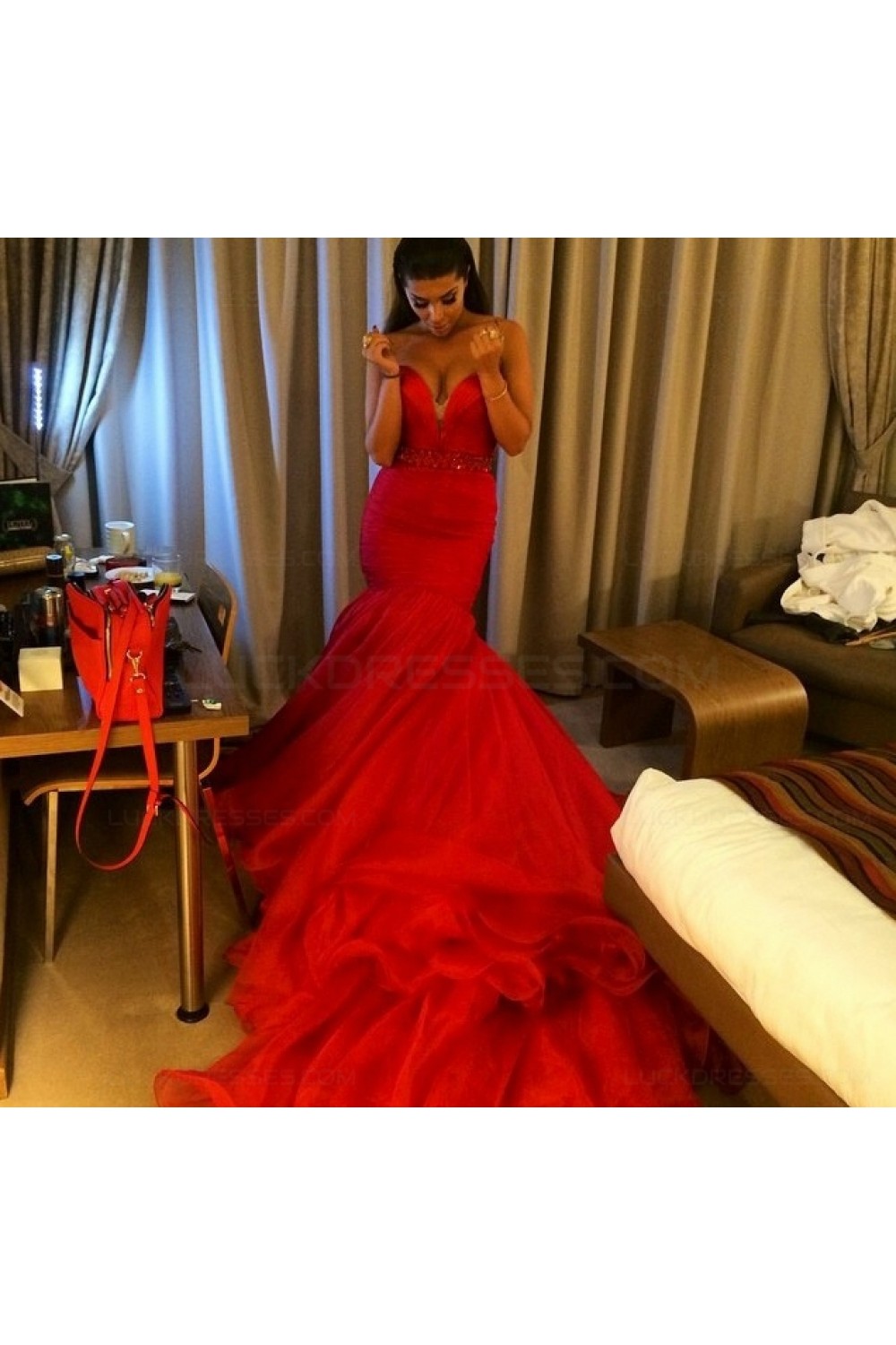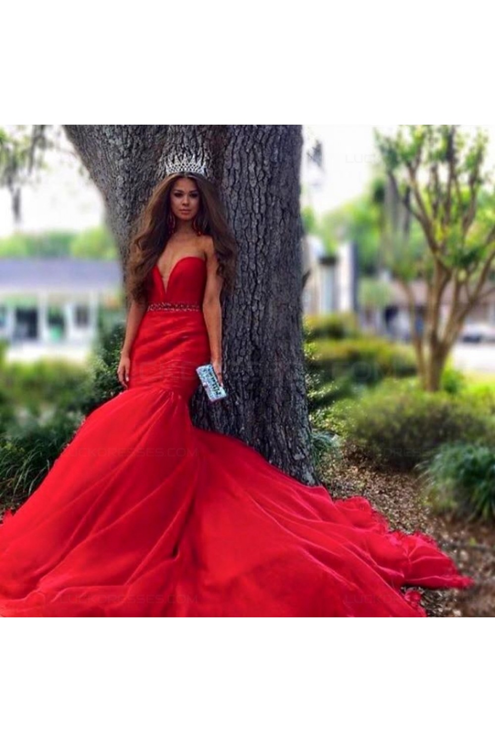 Mermaid Sweetheart Long Red Prom Dresses Party Evening Gowns 3020258