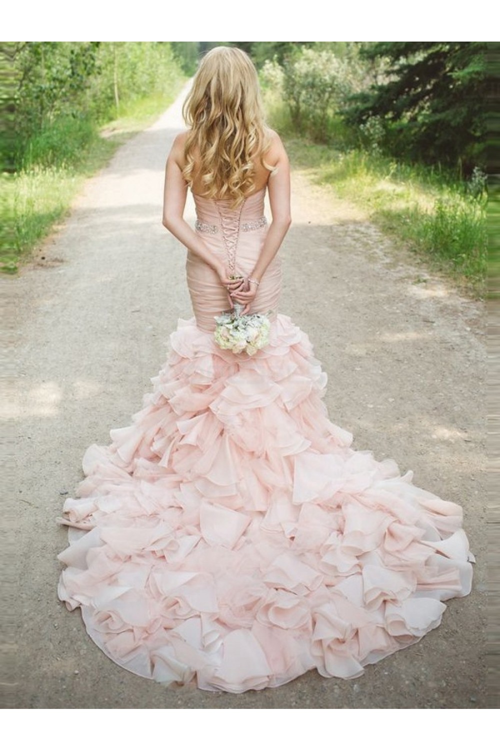 Mermaid Sweetheart Pink Beaded Waist Wedding Dresses Bridal Gowns 3030105