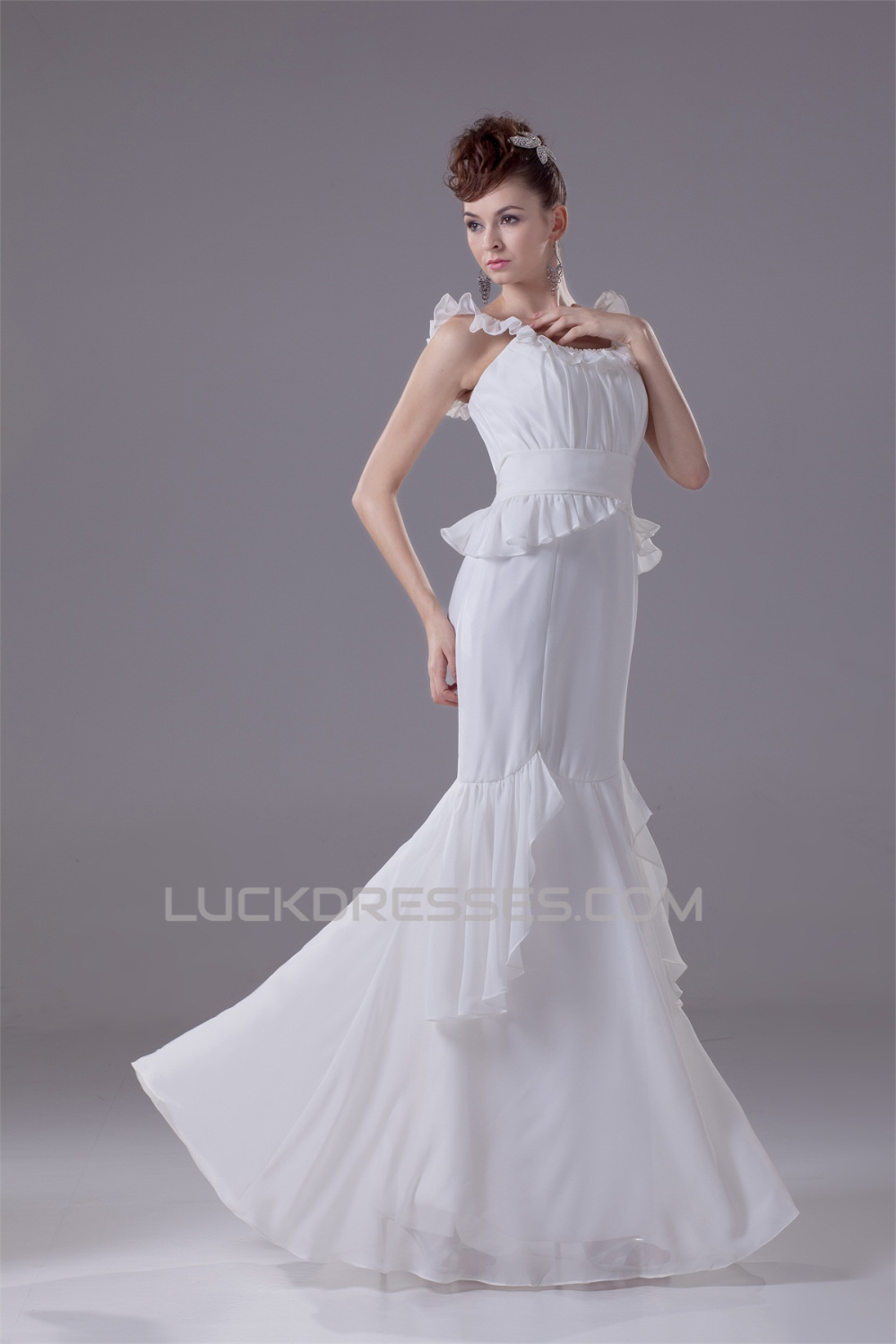 Mermaid/Trumpet Floor-Length Chiffon Sleeveless Best Wedding Dresses 2030106