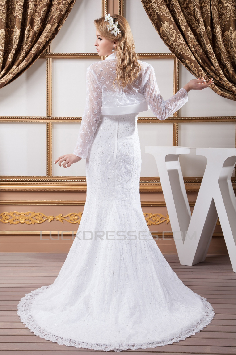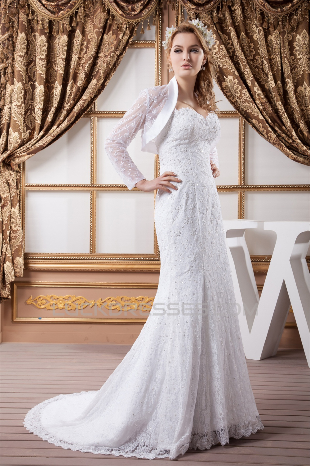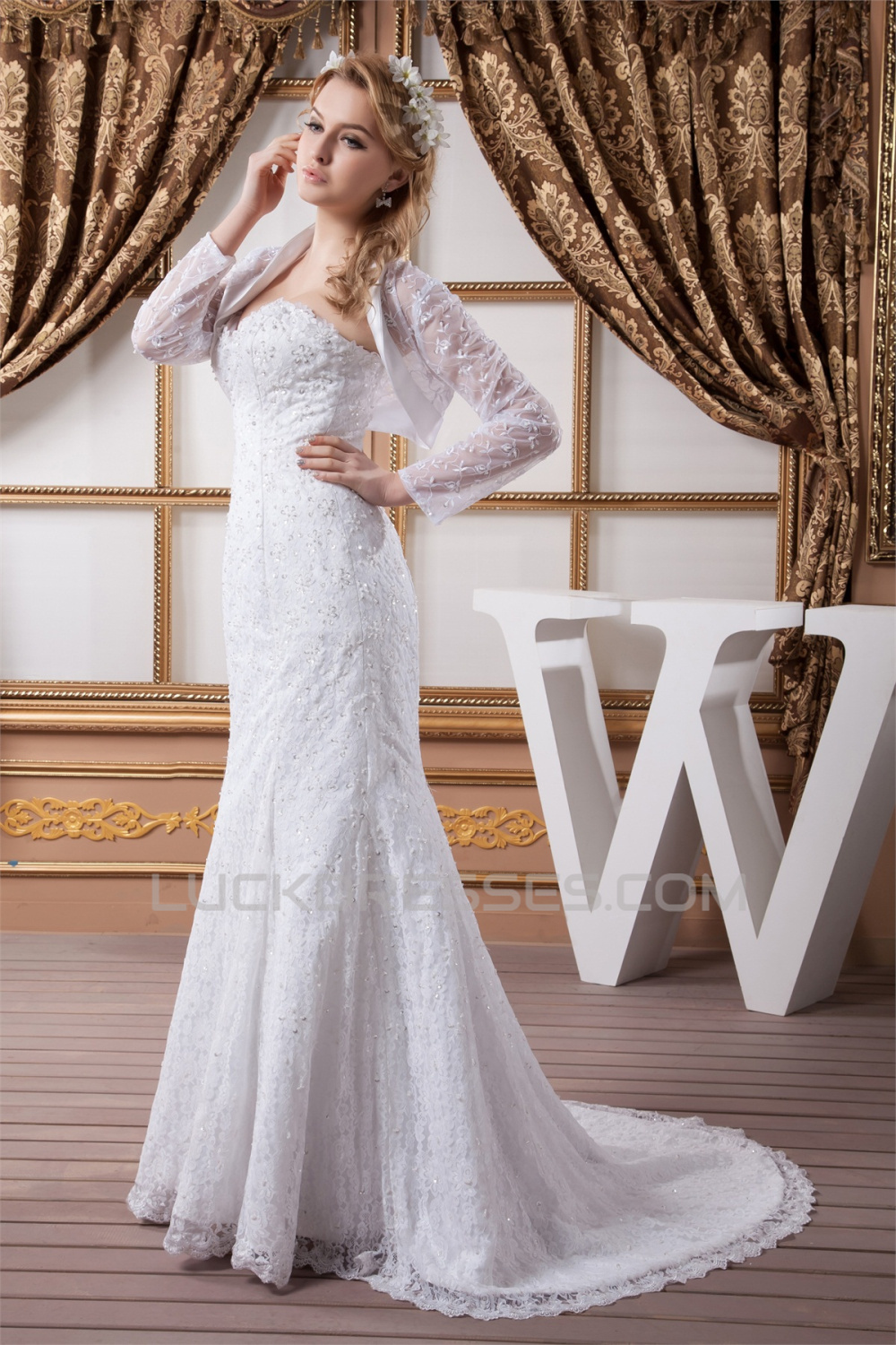 Mermaid/Trumpet Satin Lace Sweetheart Wedding Dresses with A Long Sleeve Lace Jacket 2030772