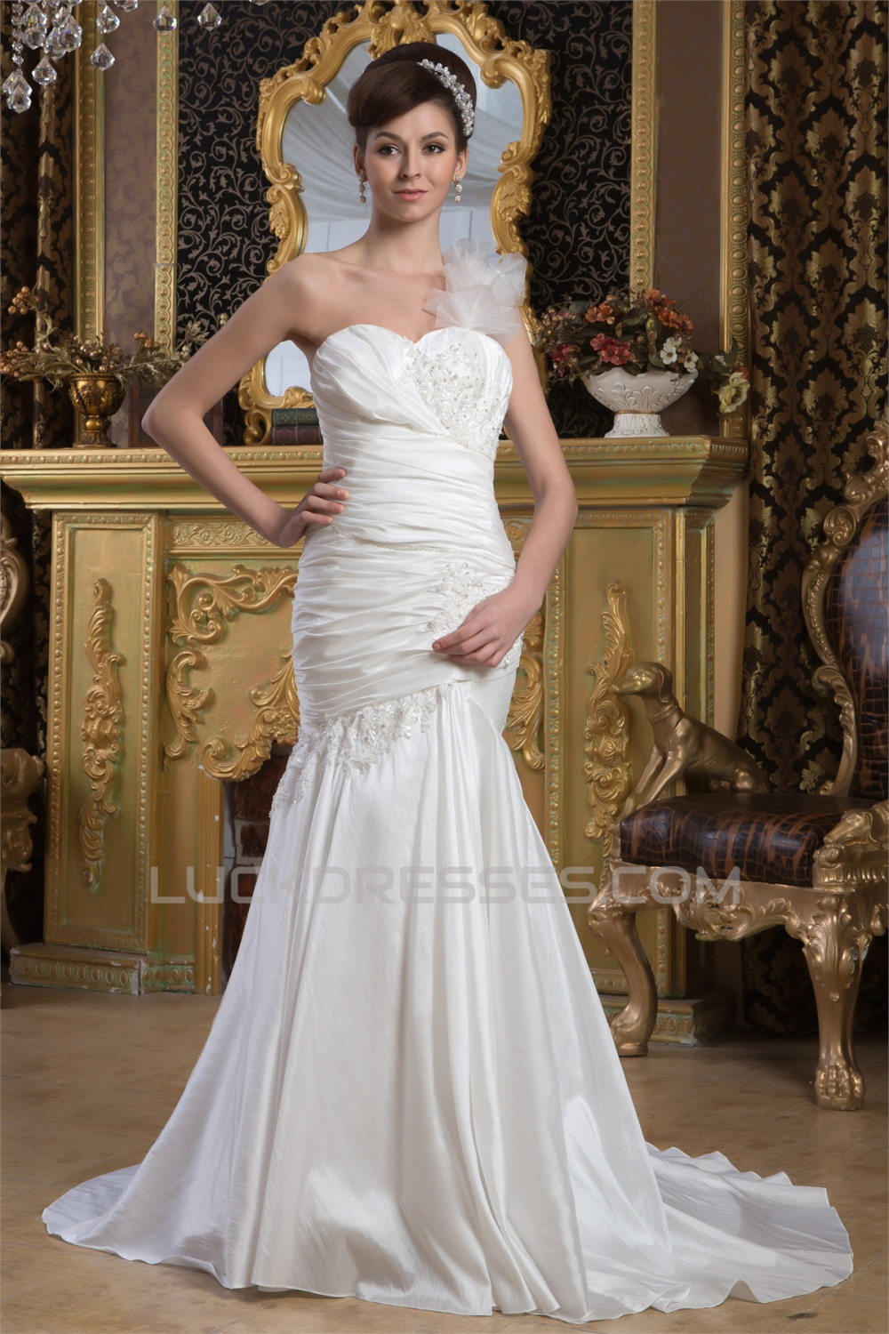 Mermaid/Trumpet Satin Taffeta One-Shoulder Sweetheart Wedding Dresses 2030893
