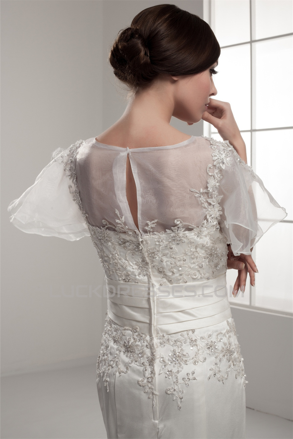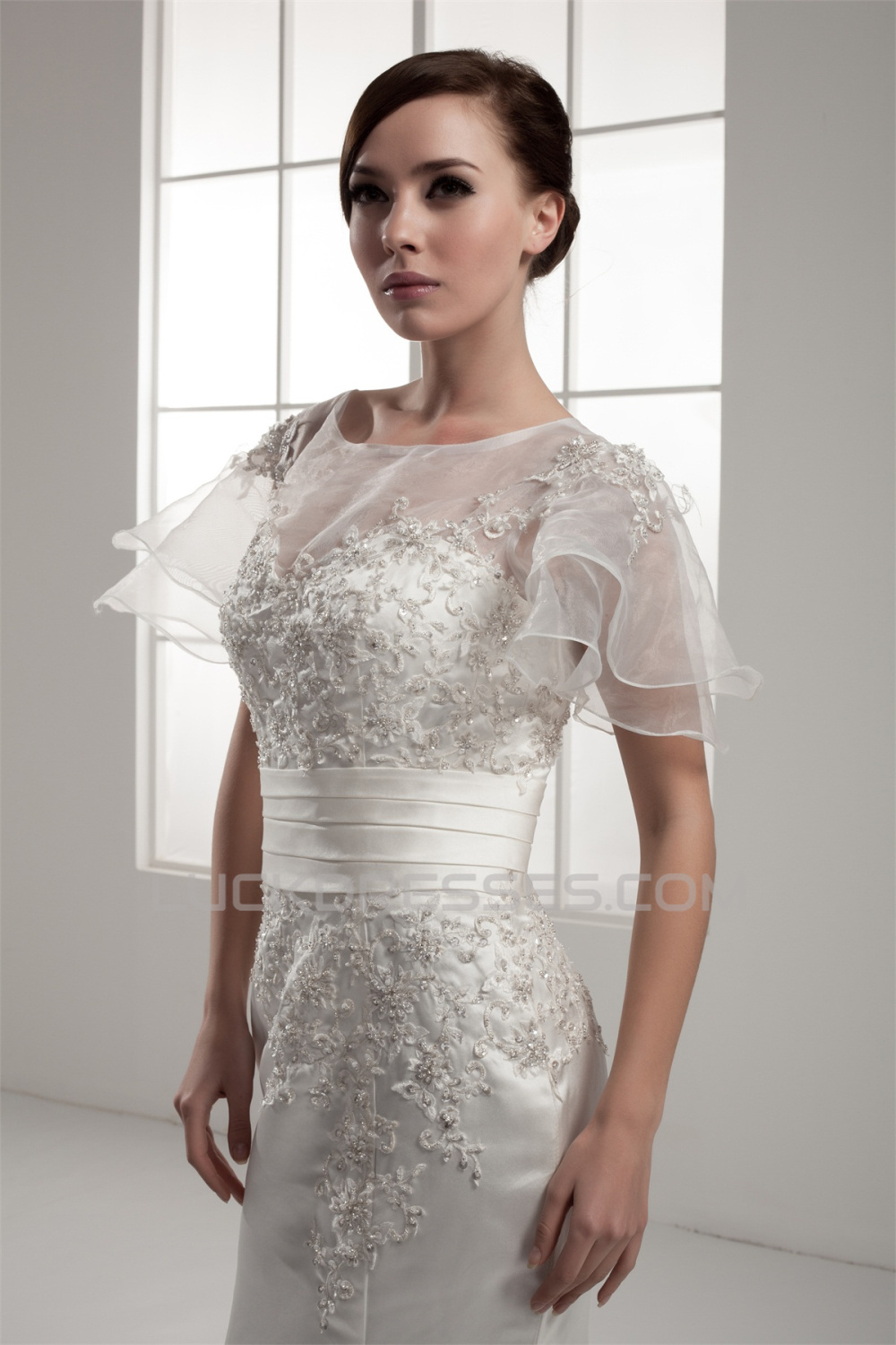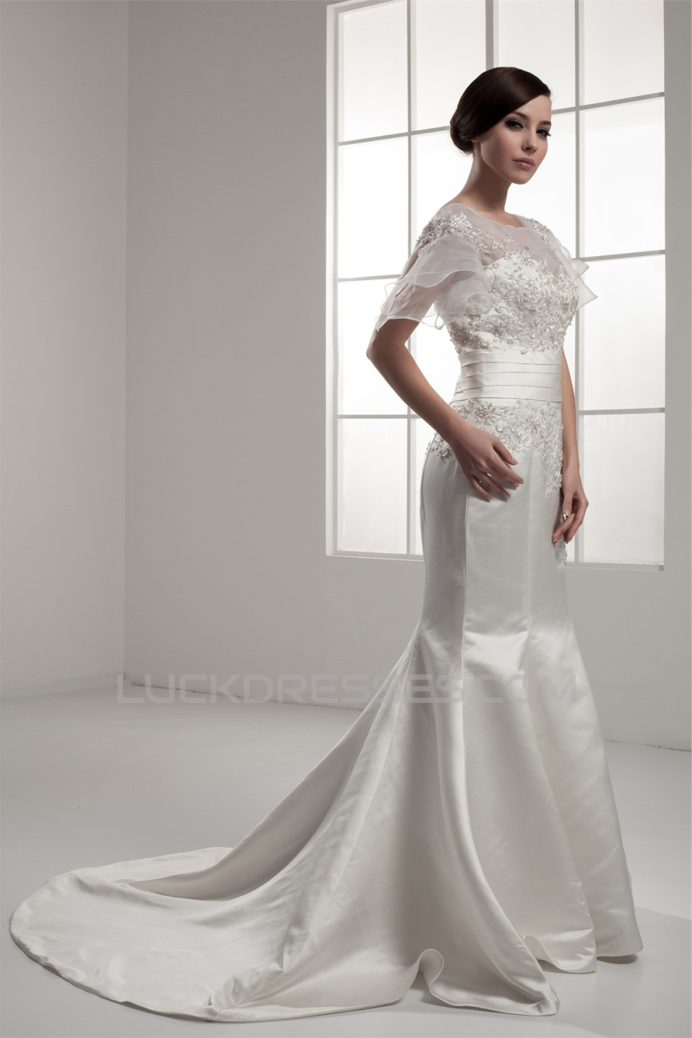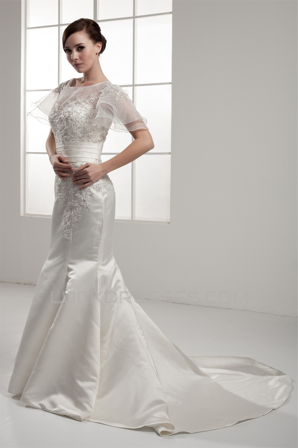 Mermaid/Trumpet Short Sleeve Portrait Lace Wedding Dresses 2030771