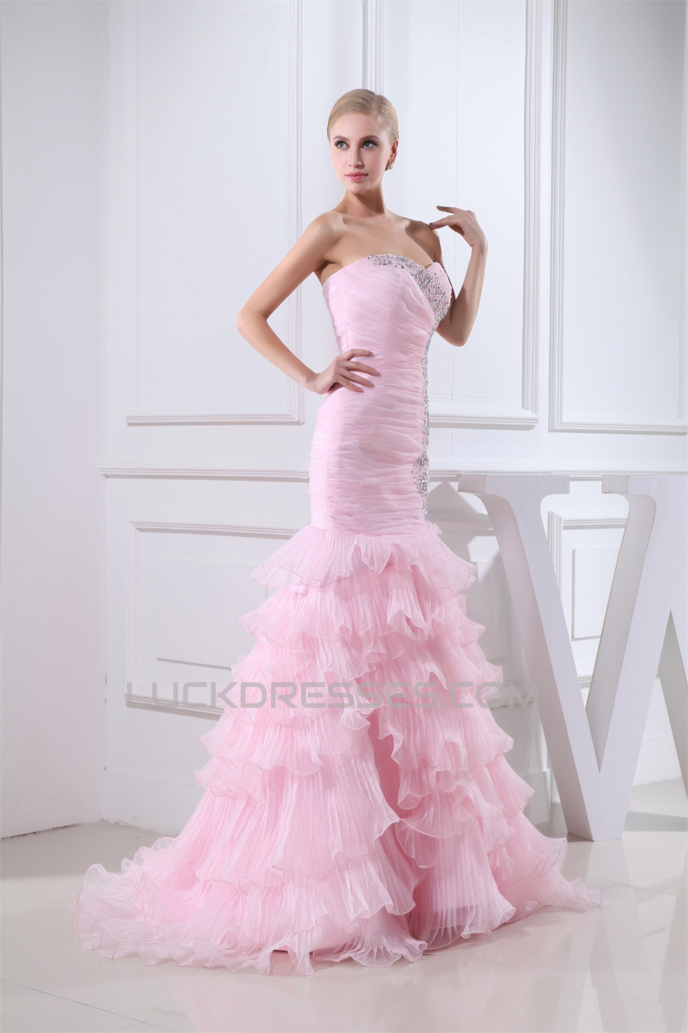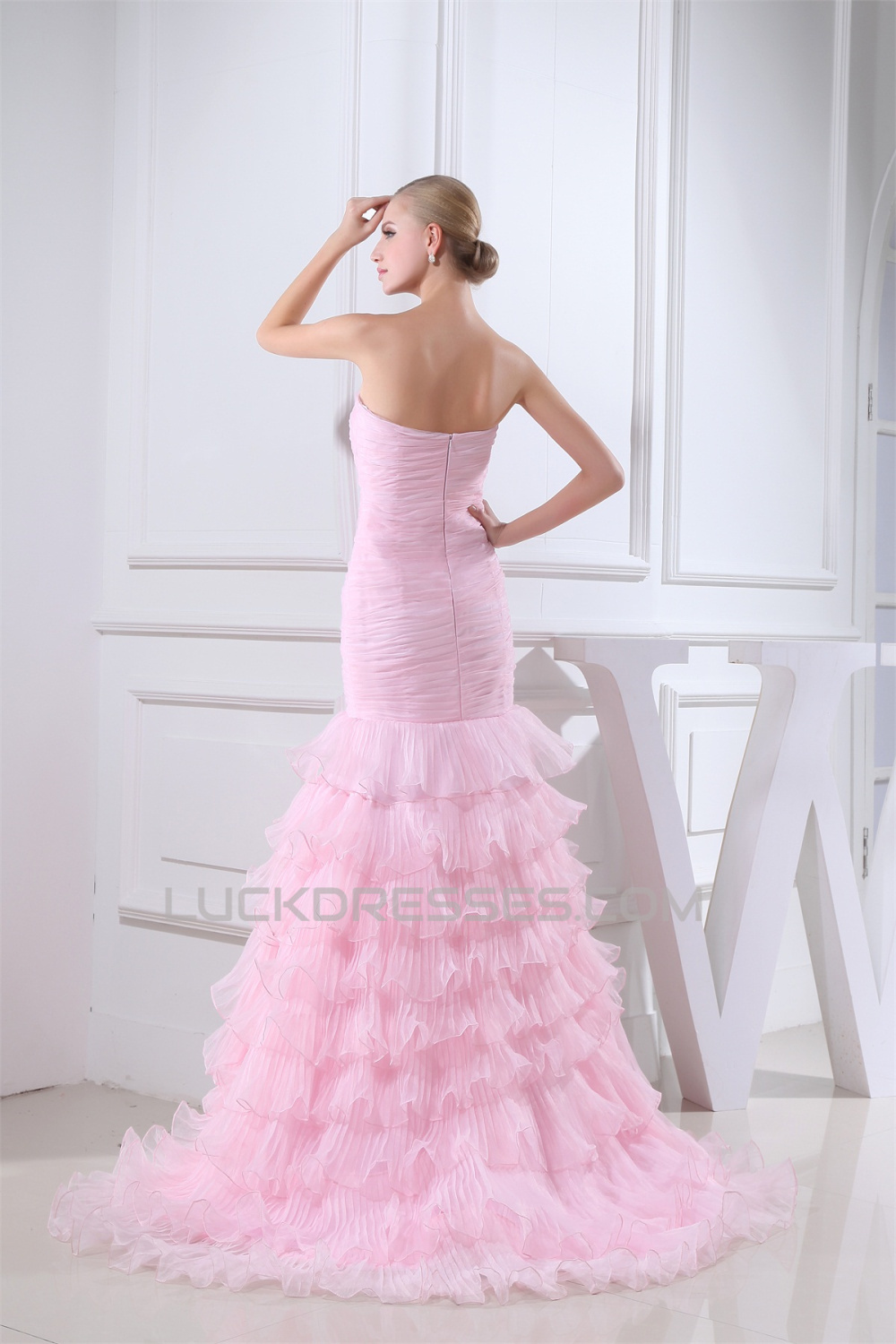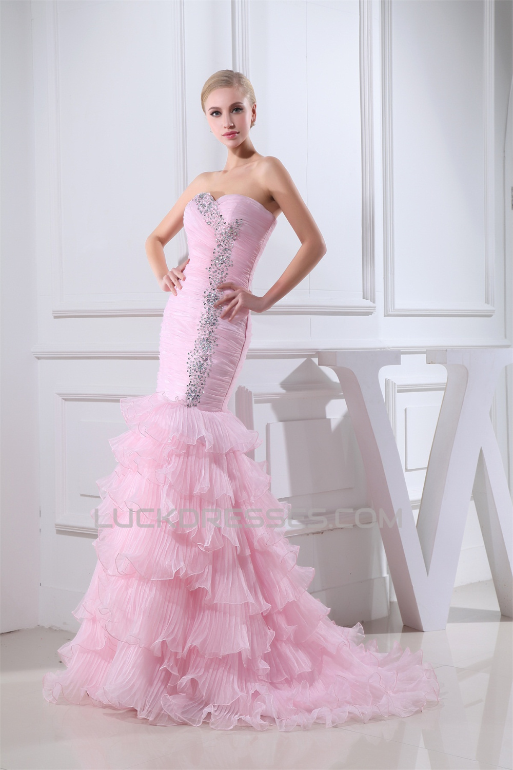 -50% Mermaid/Trumpet Sweetheart Sleeveless Satin Organza Sweet Pink Wedding Dresses 2030218