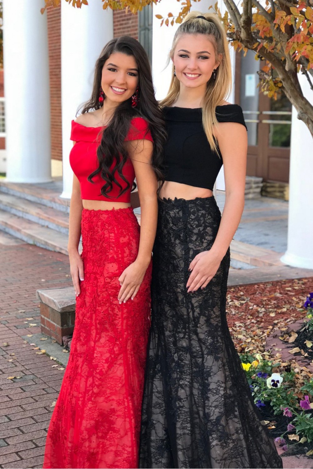 Mermaid Two Pieces Off-the-Shoulder Long Prom Dresses Formal Evening Dresses 601029