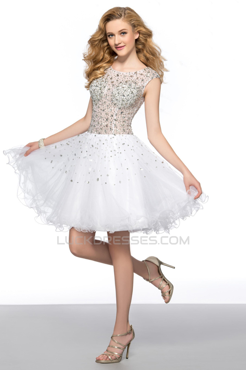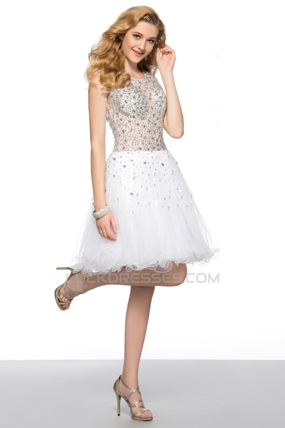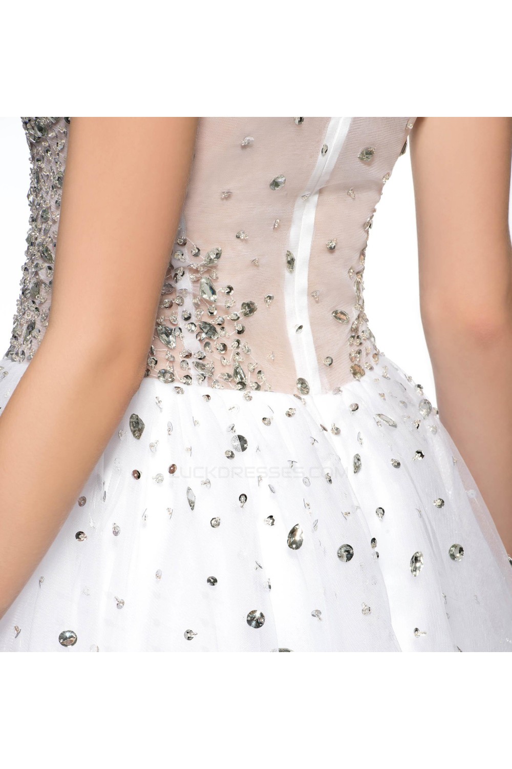 Modest Short White Beaded Prom Evening Cocktail Homecoming Party Dresses ED010628