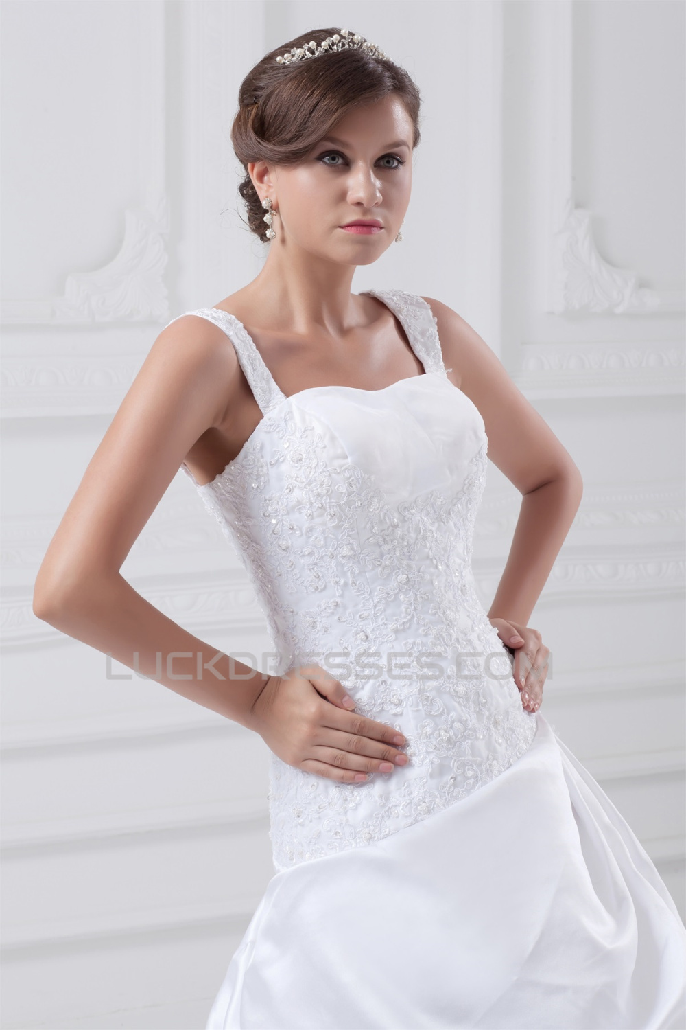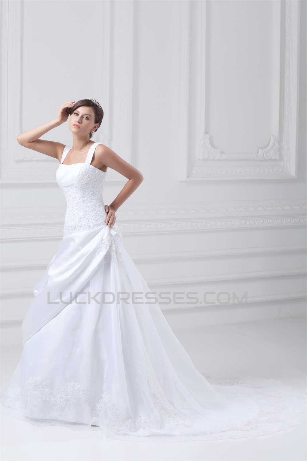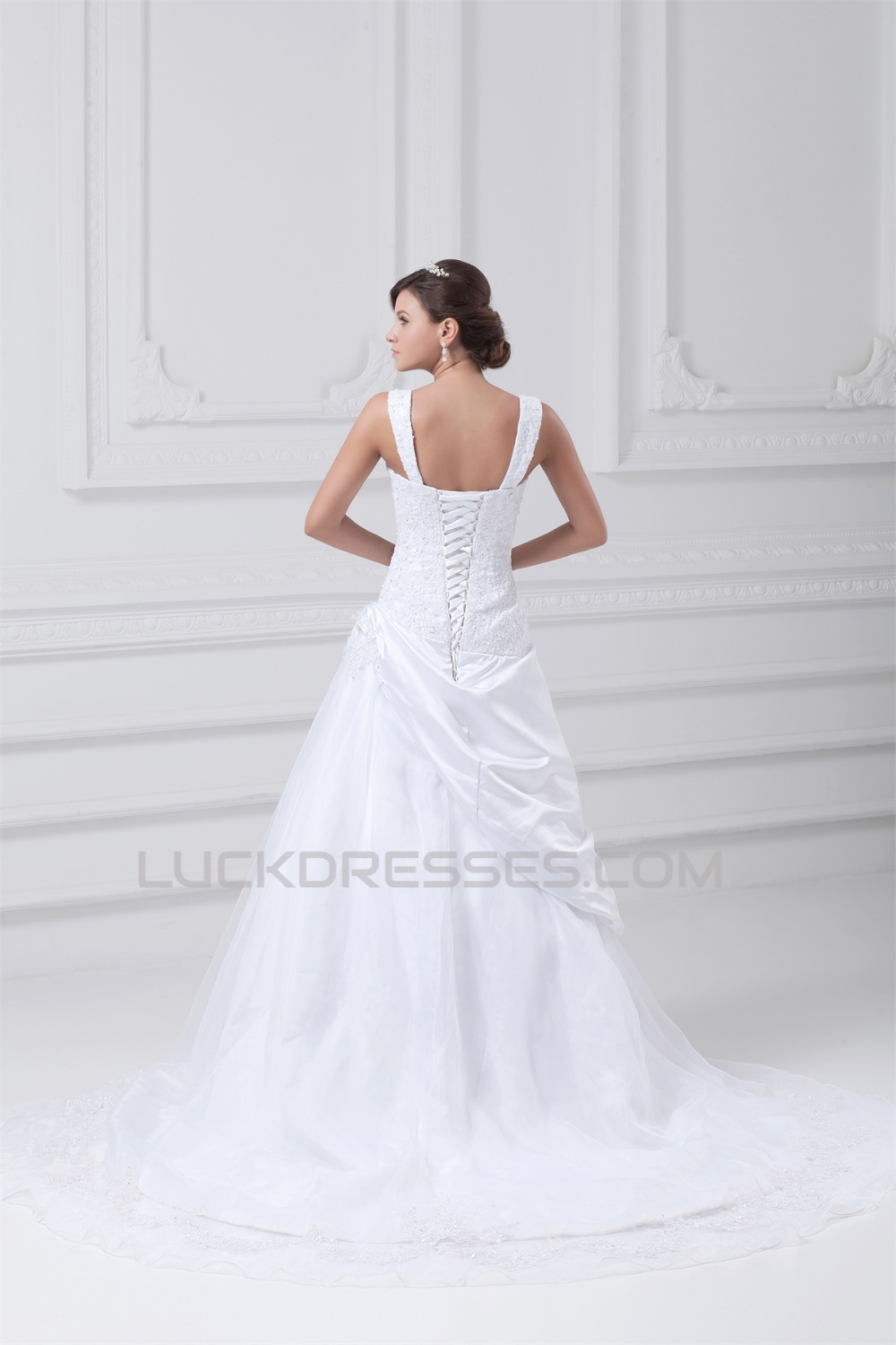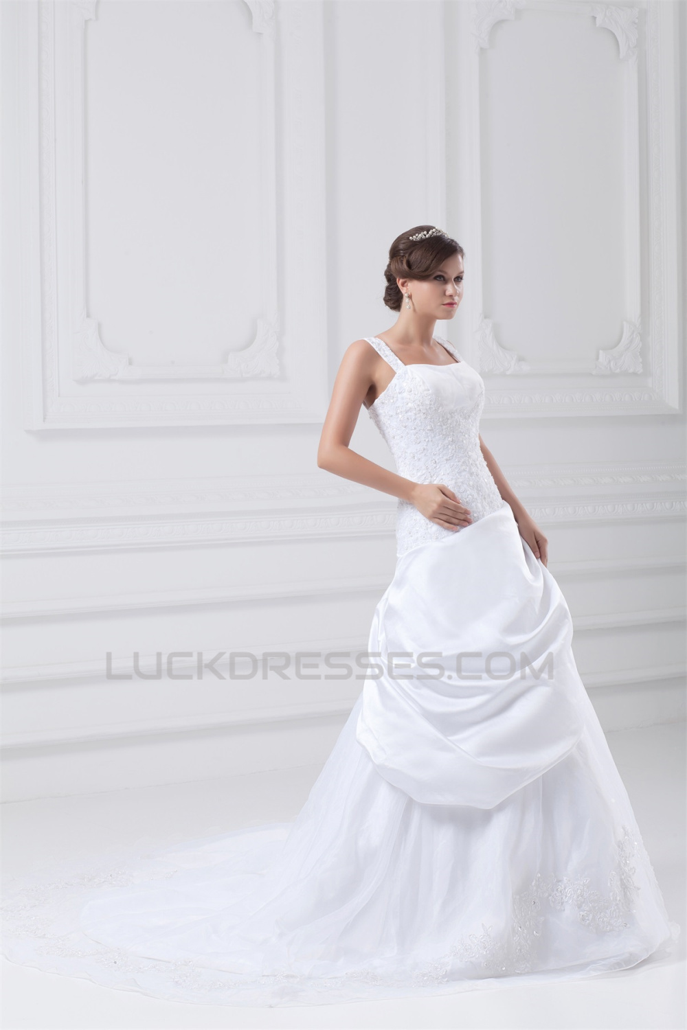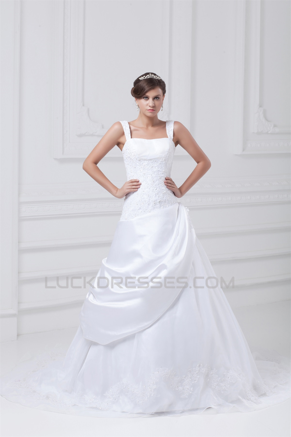New Arrival A-Line Straps Sleeveless Satin Organza Wedding Dresses 2031243
