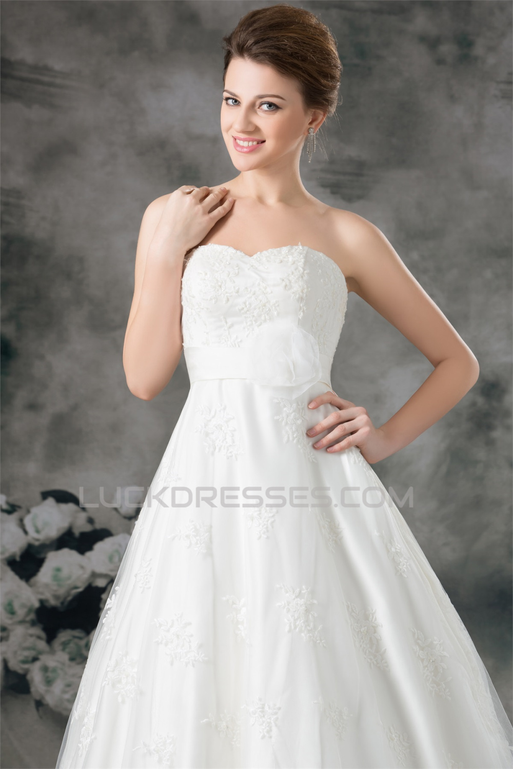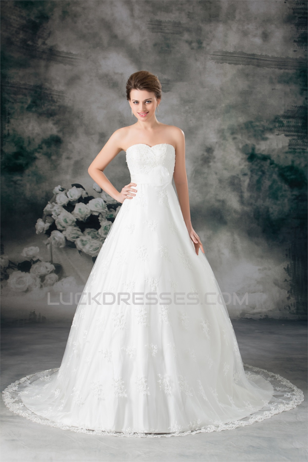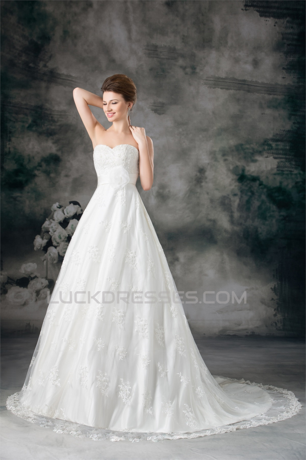 New Arrival Satin Lace Sweetheart A-Line Sleeveless Wedding Dresses 2031248