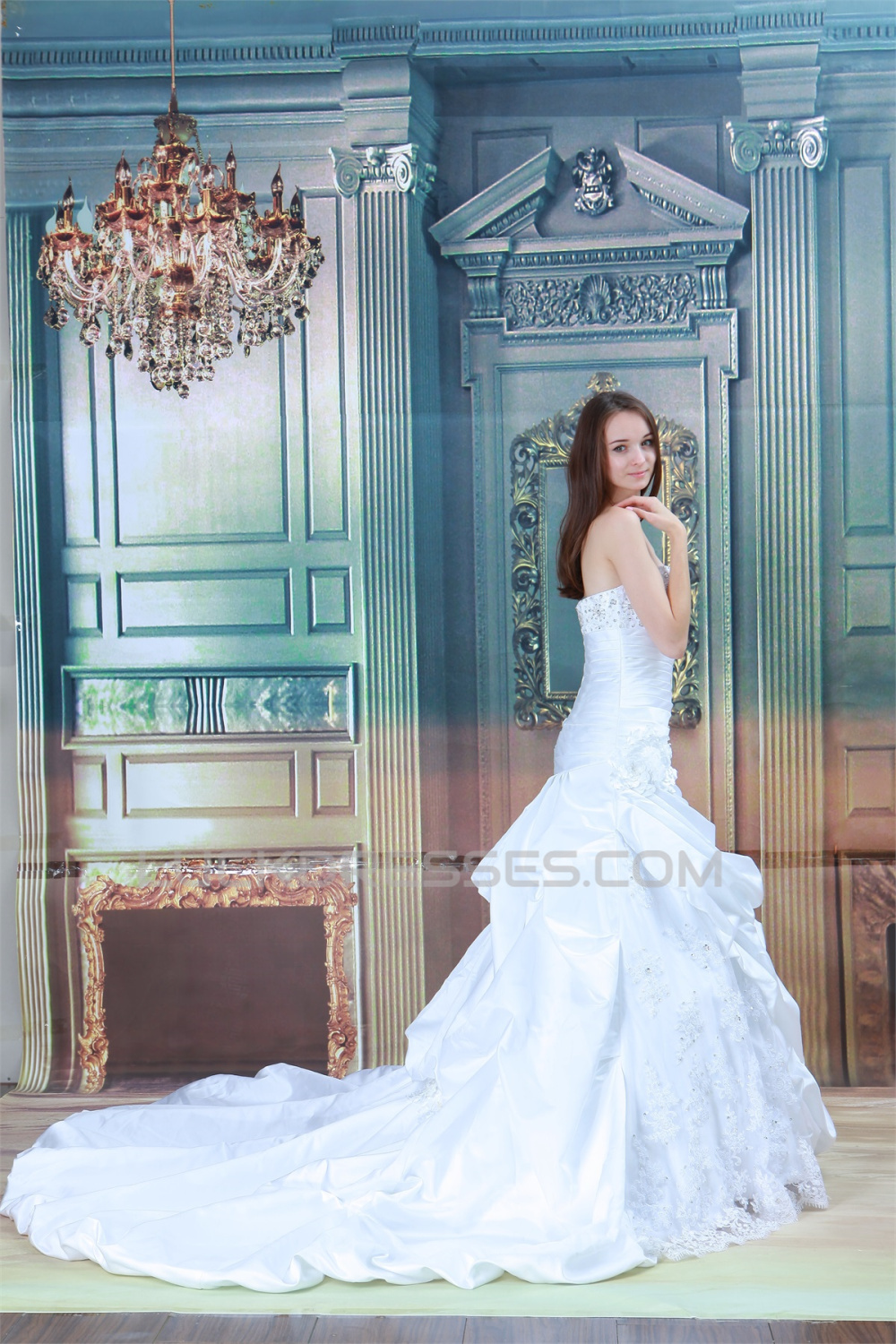 New Arrival Strapless Satin Lace A-Line Sleeveless Wedding Dresses 2031252
