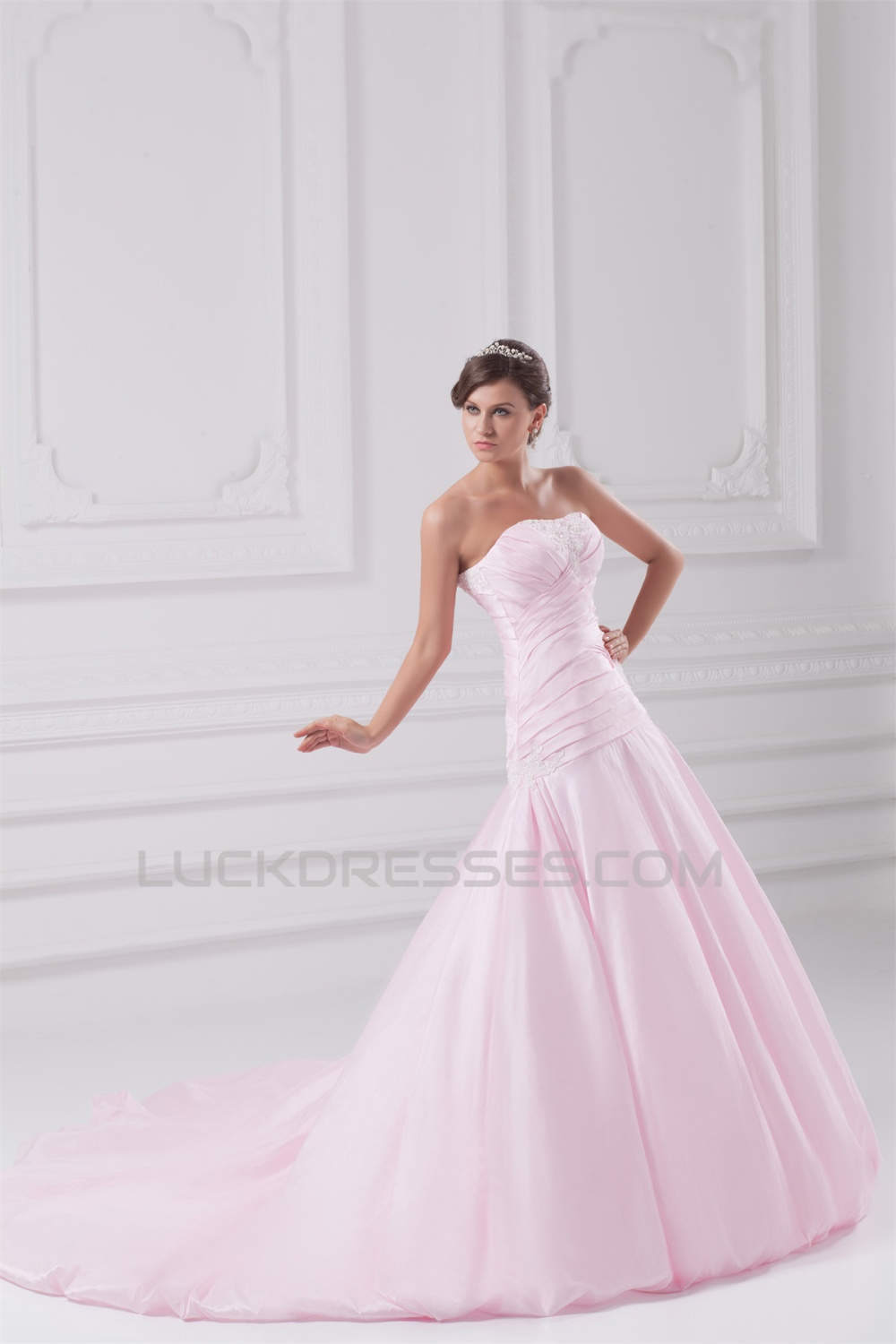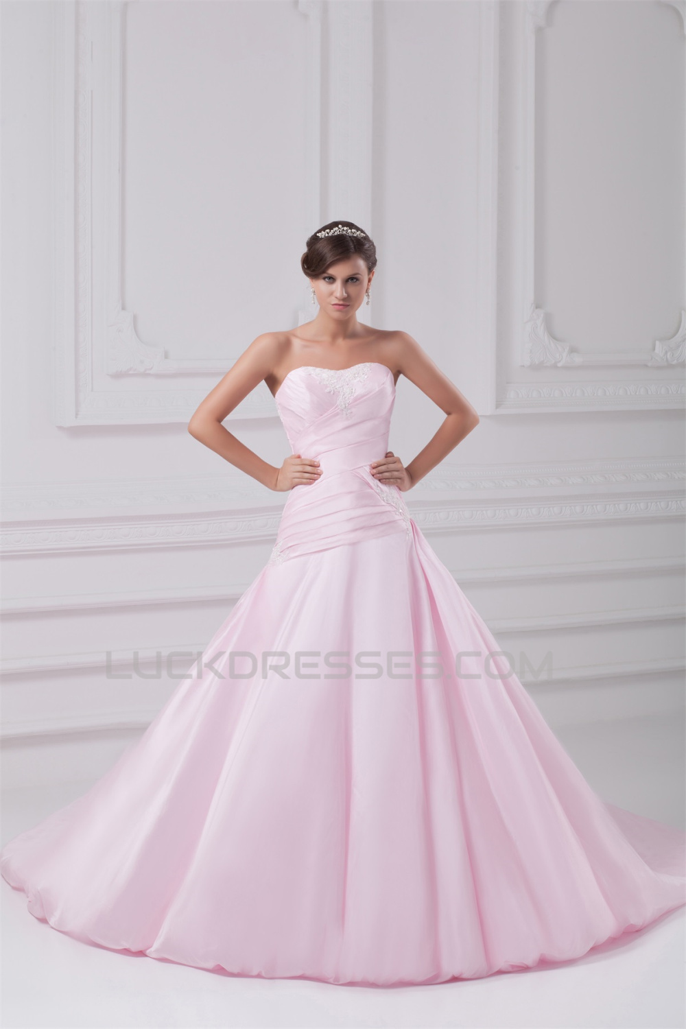 New Arrival Sweetheart Satin A-Line Sleeveless Wedding Dresses 2031254
