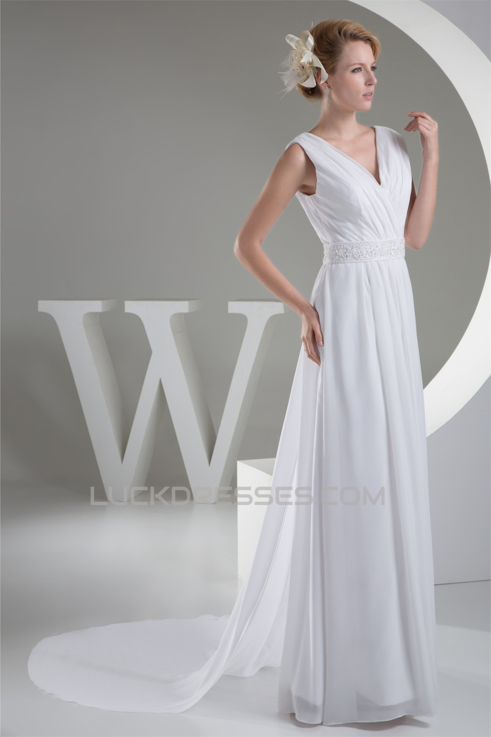 New Design A-Line Chiffon V-Neck Sleeveless Beaded Wedding Dresses 2030225