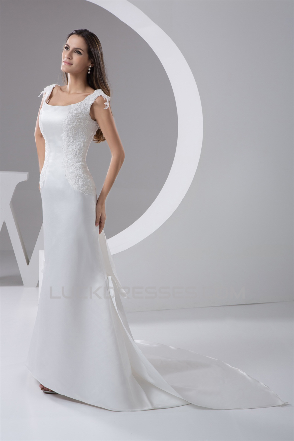 New Design Satin Square Mermaid/Trumpet Lace Wedding Dresses 2030794