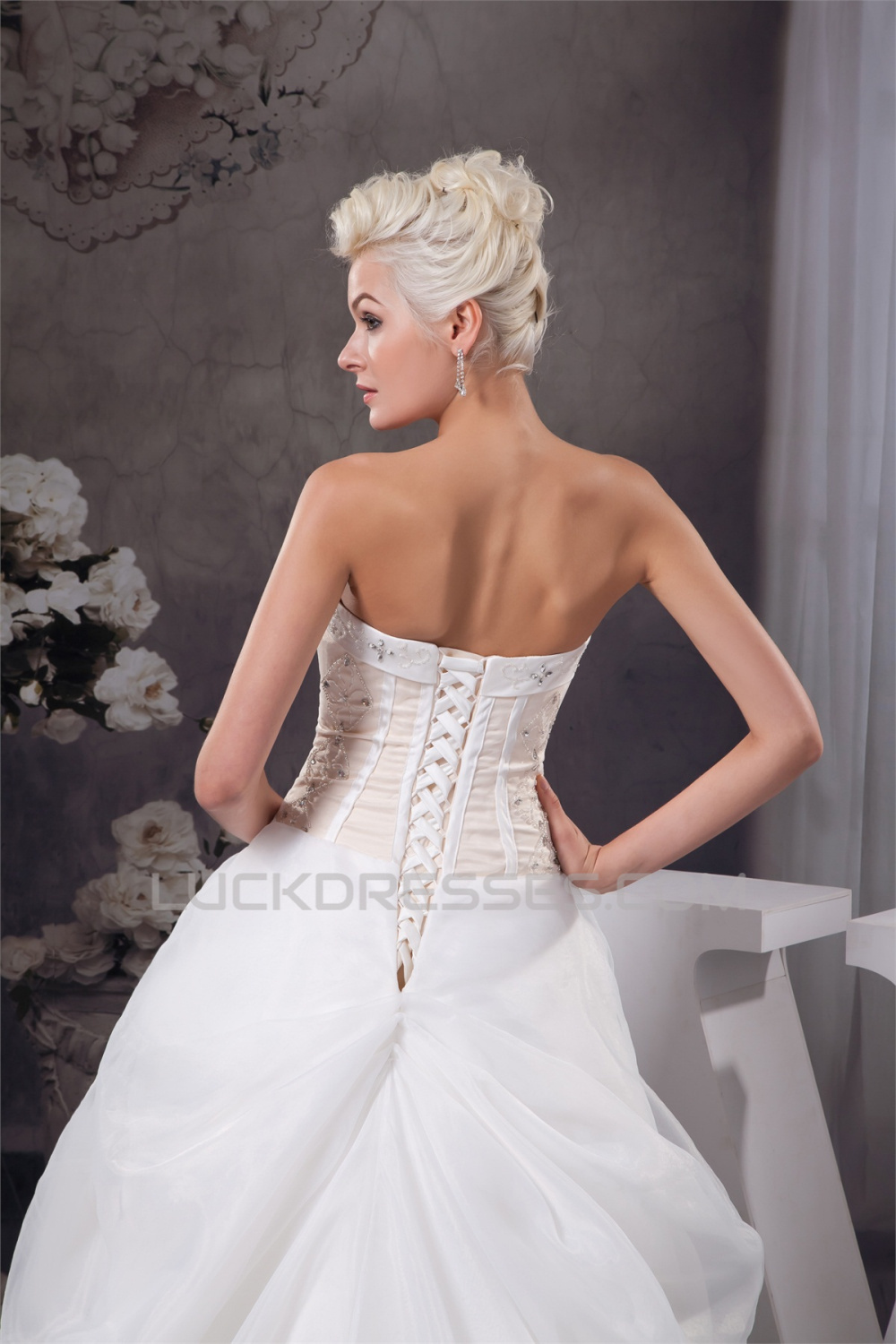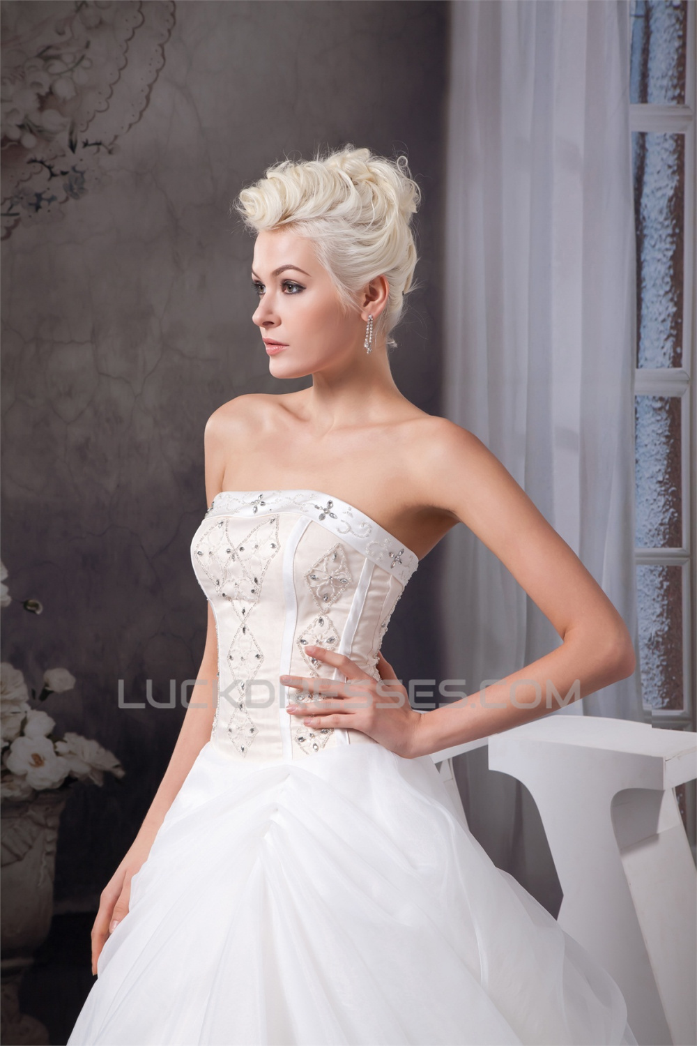 New Style Satin Strapless Sleeveless A-Line Beaded Wedding Dresses 2030805