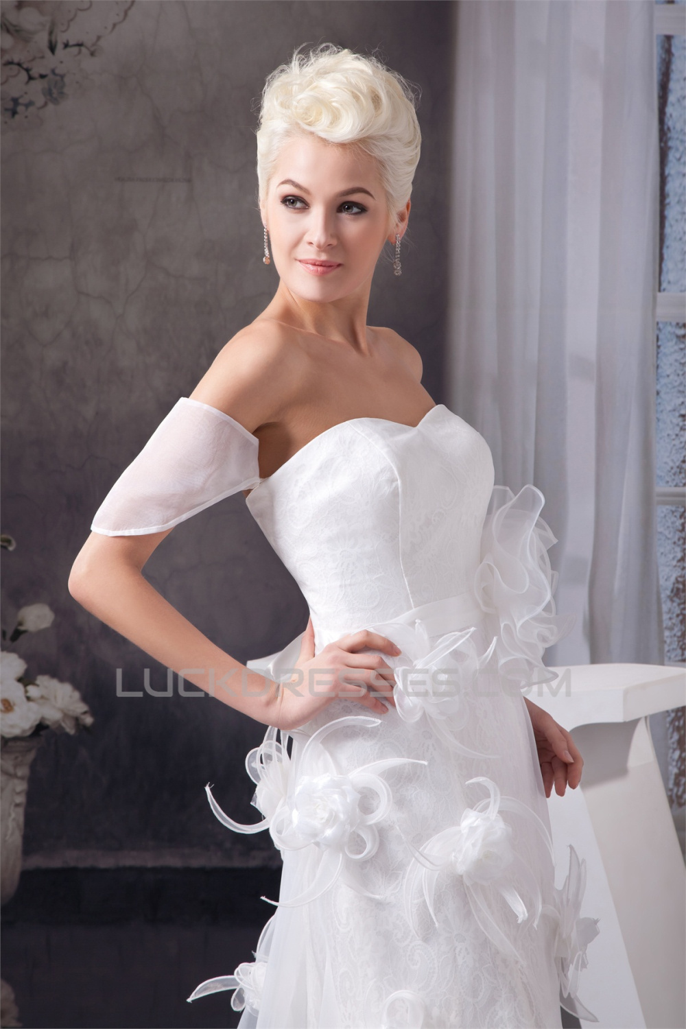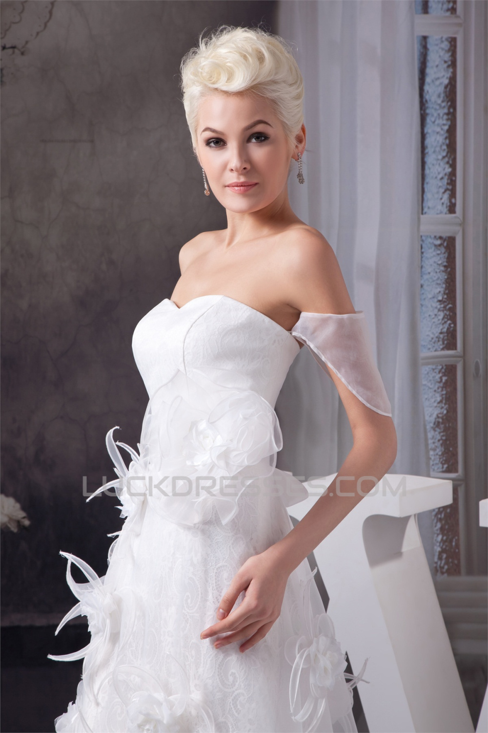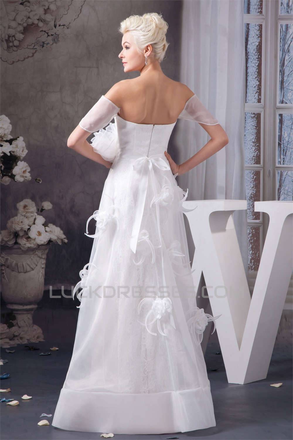 Off-the-Shoulder Satin Lace Sheath/Column Sweet Wedding Dresses 2030807