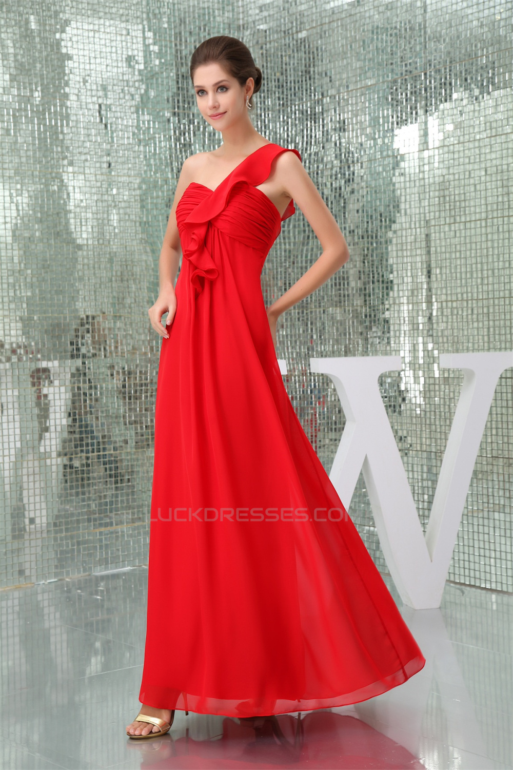 One-Shoulder A-Line Chiffon Sleeveless Draped Best Long Red Bridesmaid Dresses 02010064