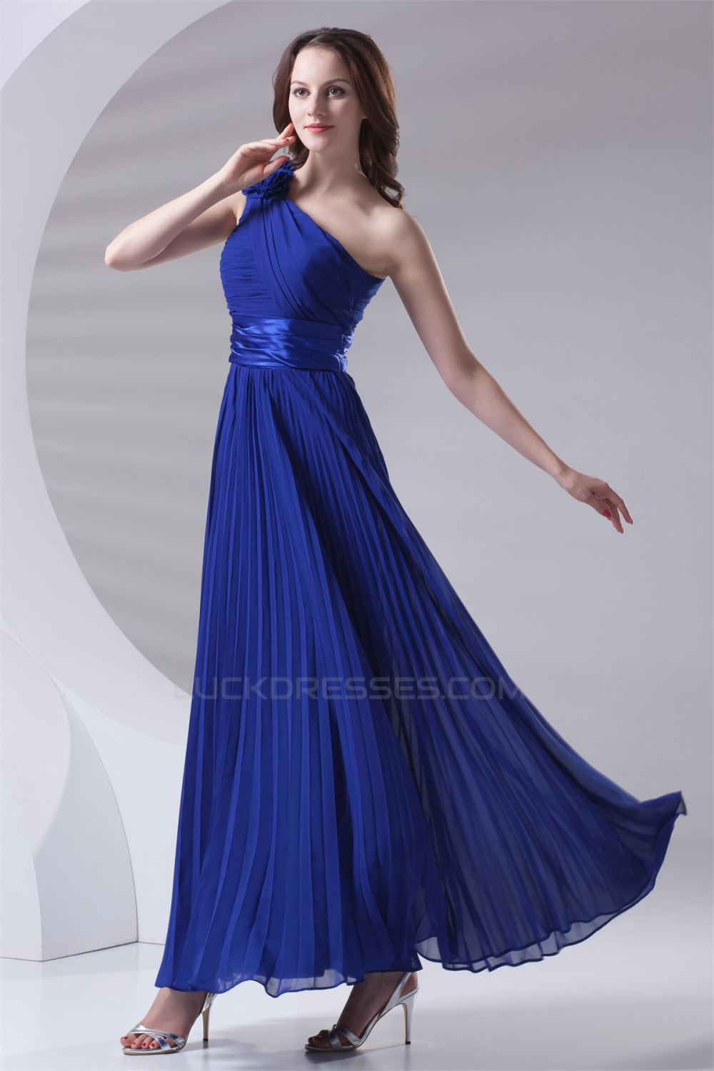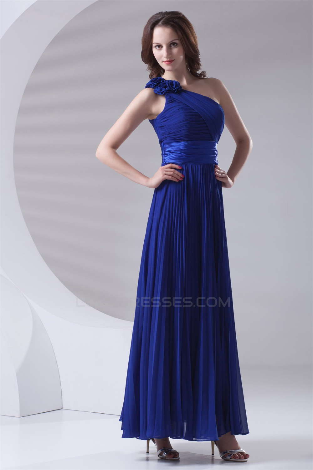 One-Shoulder A-Line Handmade Flowers Chiffon Long Blue Bridesmaid Dresses 02010172