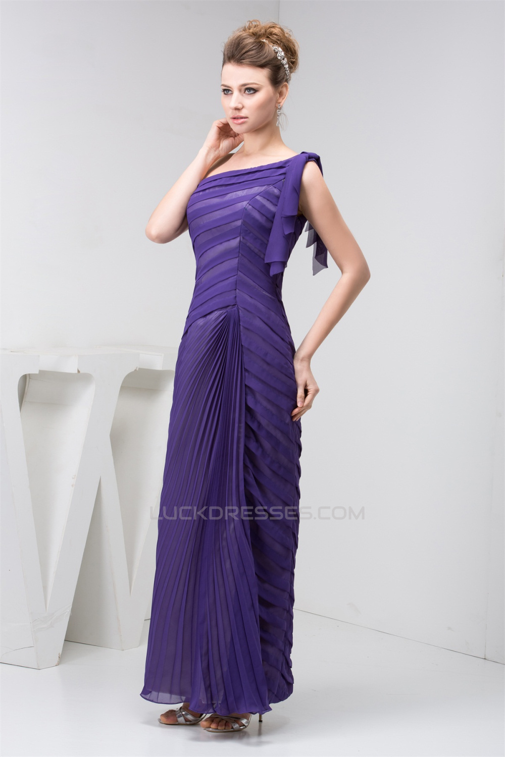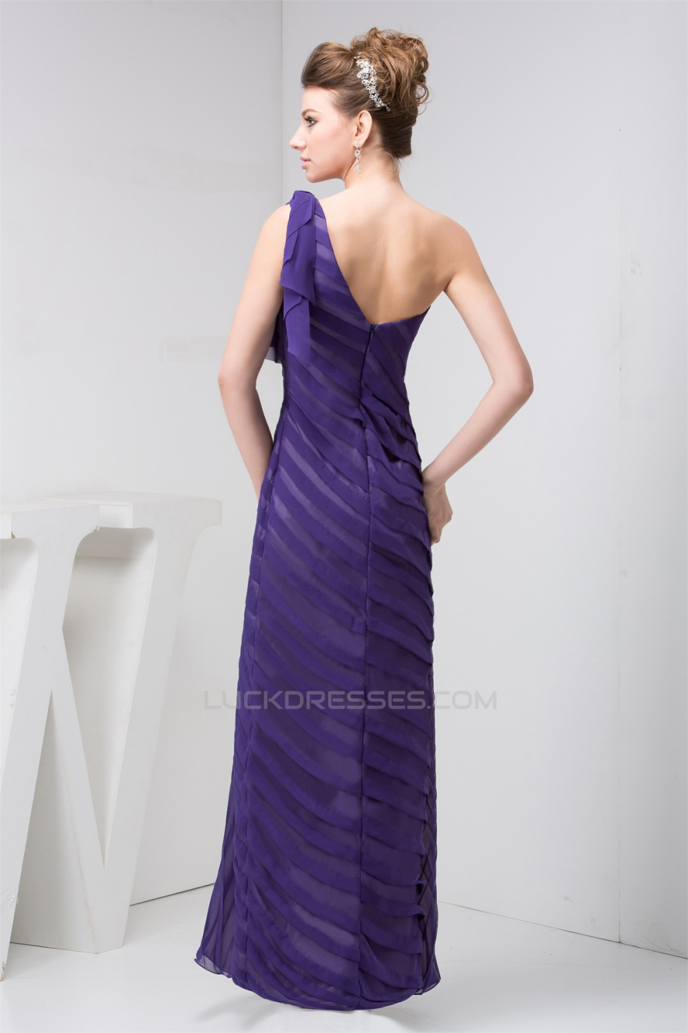 One-Shoulder Chiffon Long Purple Pleats Prom Evening Bridesmaid Dresses 02020539