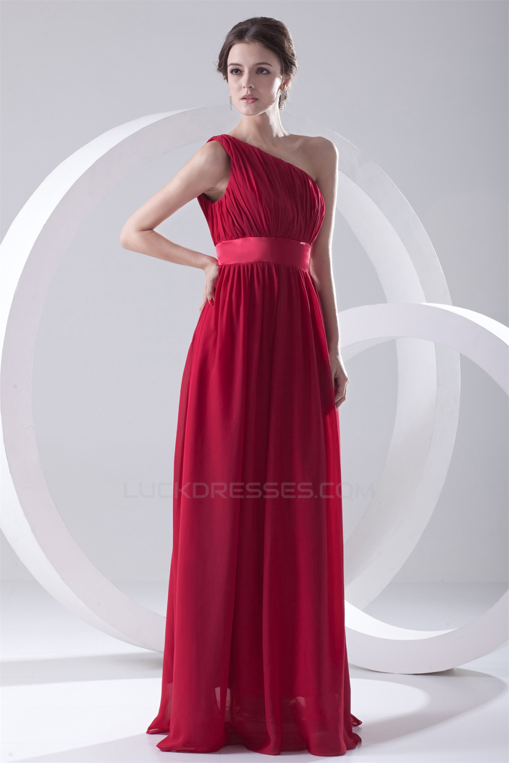 One-Shoulder Chiffon Red Long Bridesmaid Dresses under 100 02010173