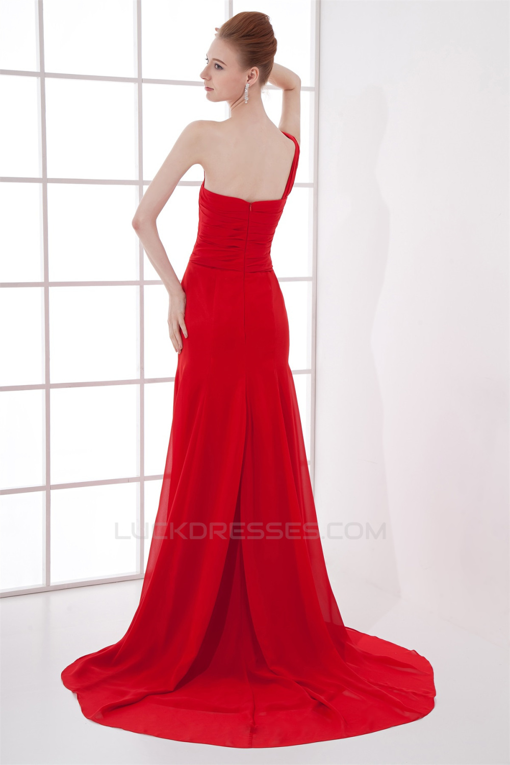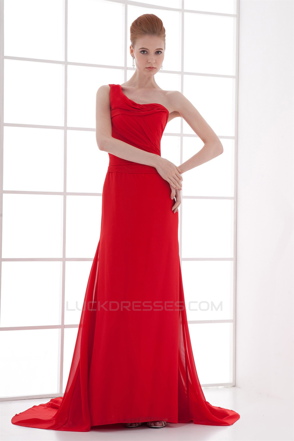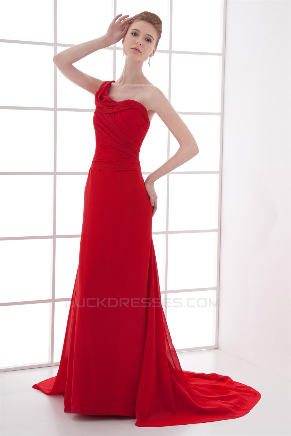 One-Shoulder Court Train Pleats Sheath/Column Prom/Formal Evening Dresses 02020785