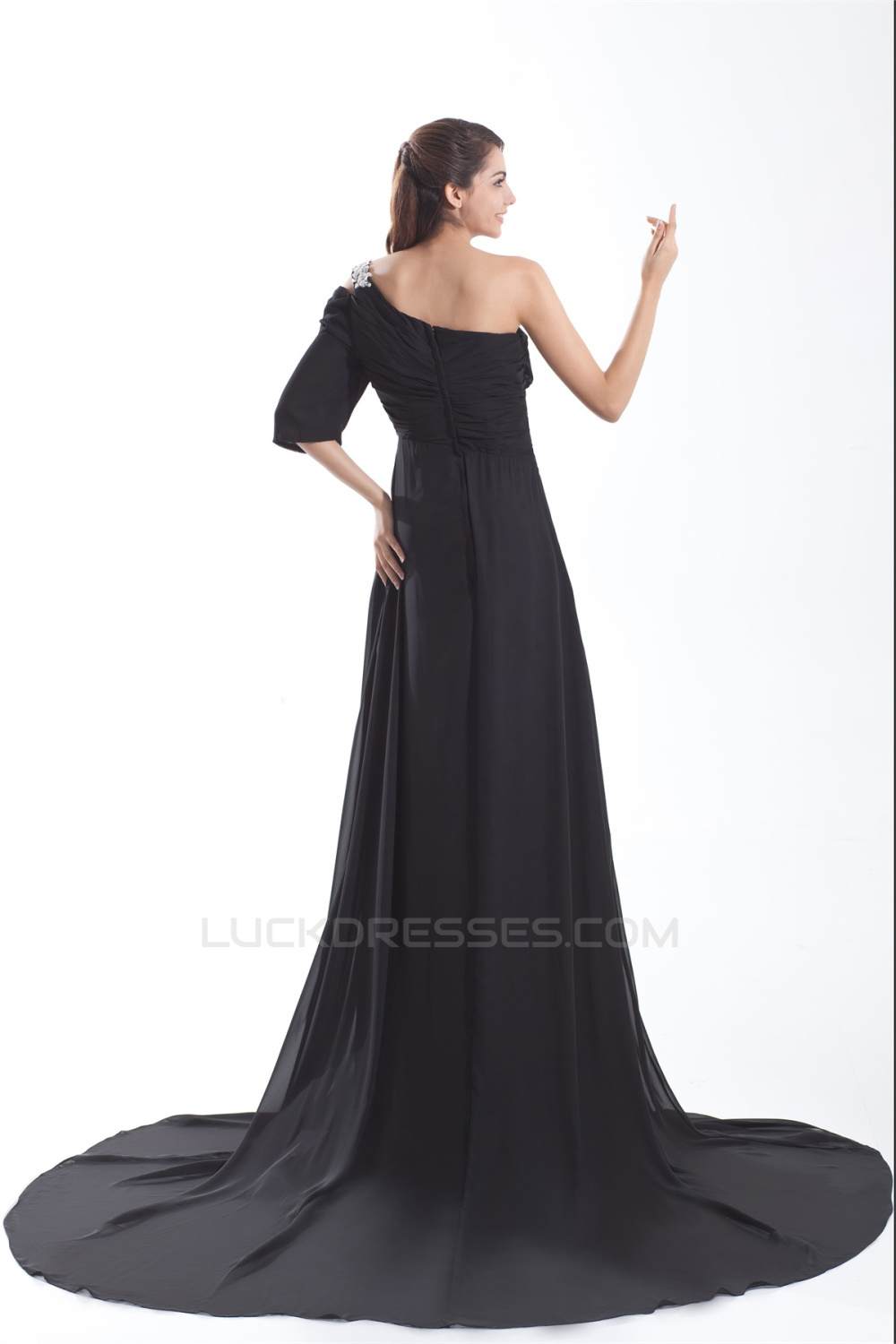 One-Shoulder Pleats A-Line Half Elbow Length Prom/Formal Evening Dresses 02020789
