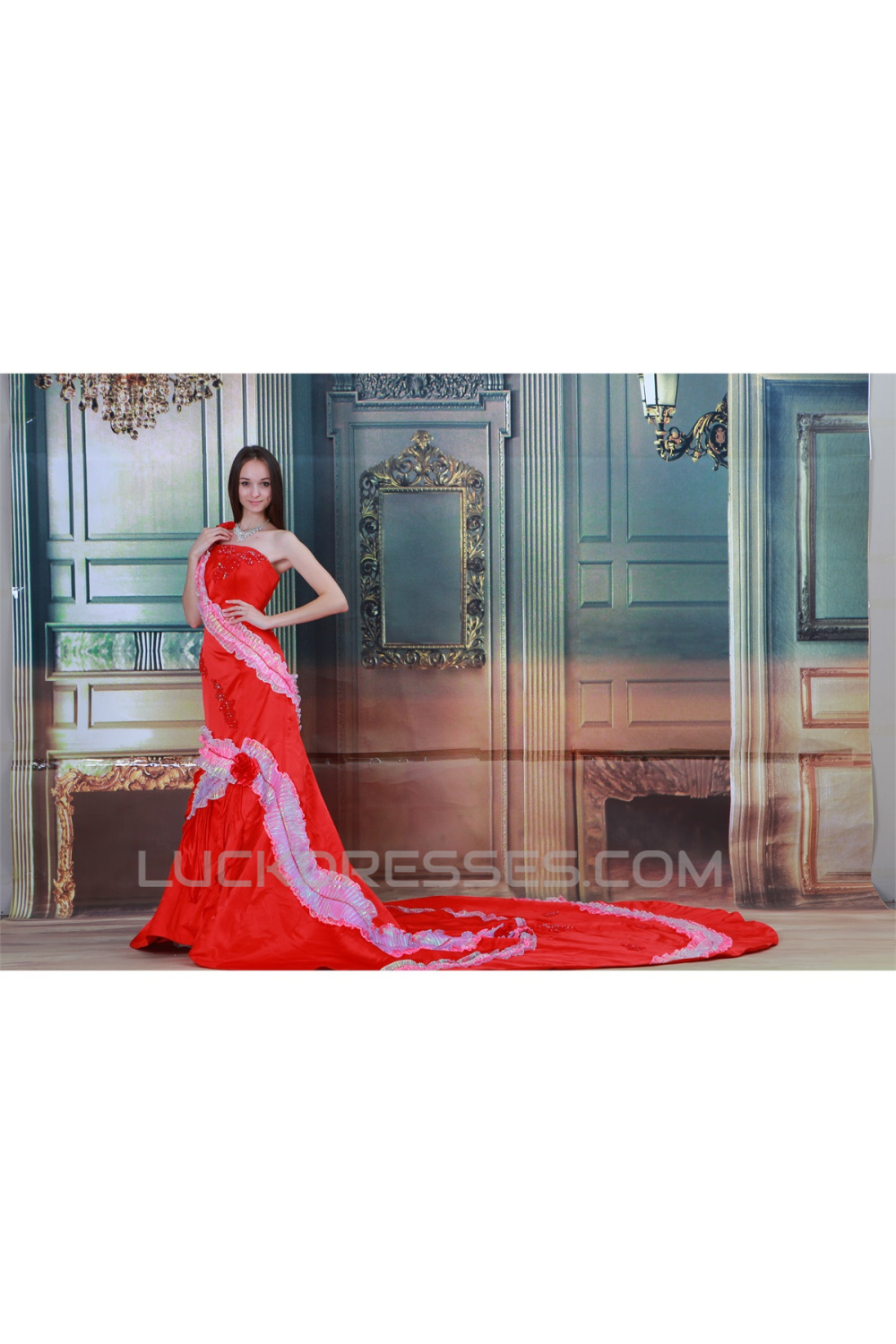 One-Shoulder Satin Sleeveless A-Line Wedding Dresses 2031204