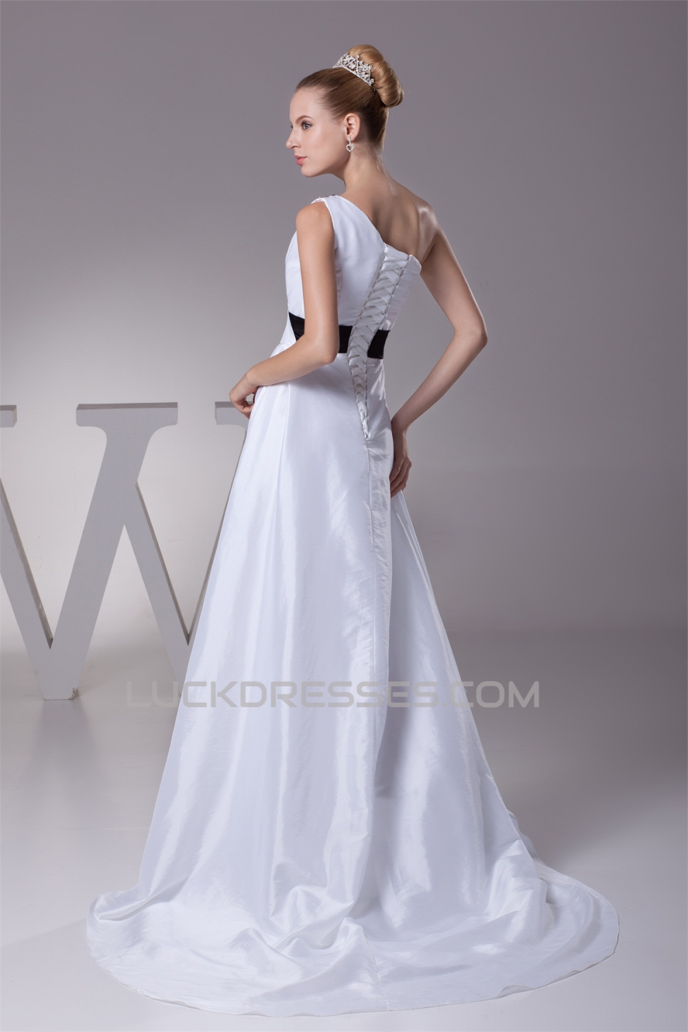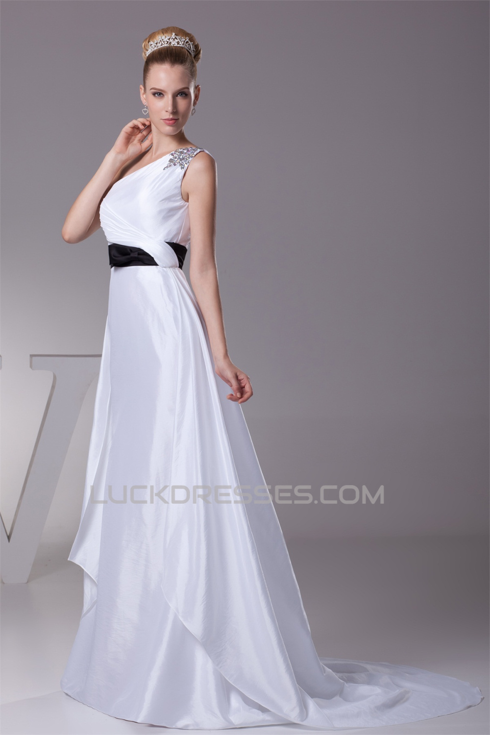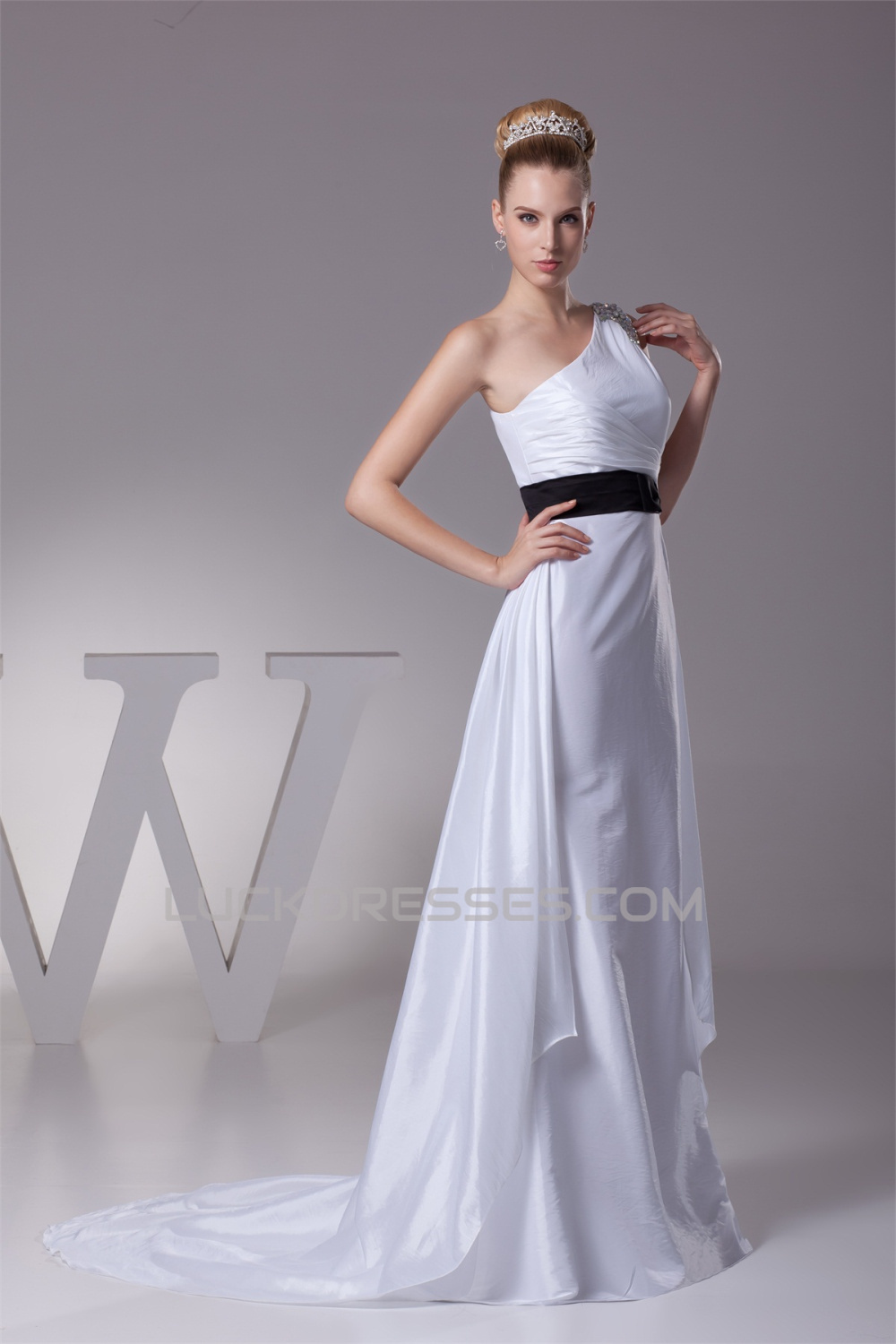 -50% One-Shoulder Sheath/Column Satin Taffeta Reception Wedding Dresses 2030243