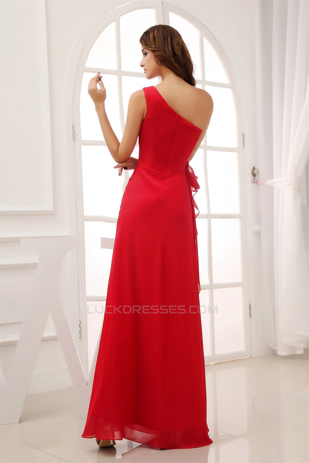 One-Shoulder Sheath/Column Sleeveless Ruffles Chiffon Long Bridesmaid Dresses 02010066