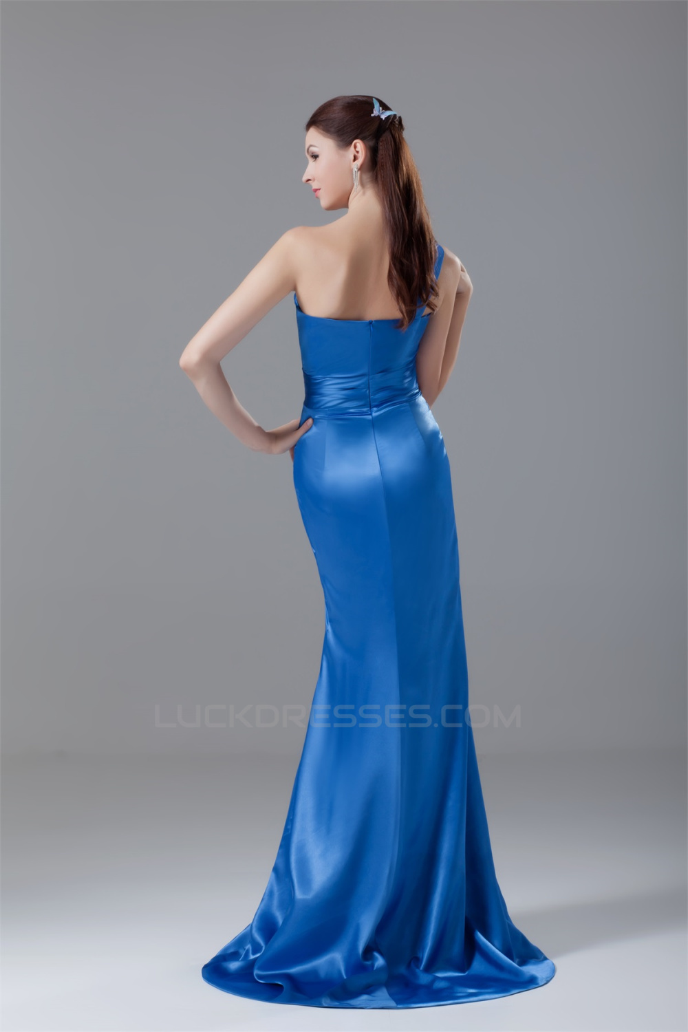 One-Shoulder Sleeveless Elastic Woven Satin Prom/Formal Evening Bridesmaid Dresses 02020879