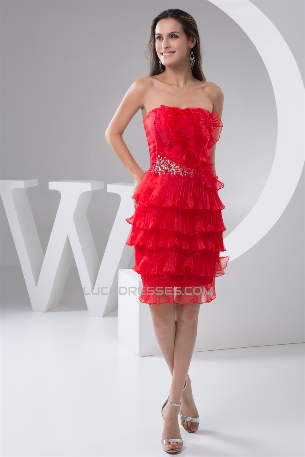 Organza Strapless Sleeveless Beading Knee-Length Prom/Formal Evening Dresses 02021336
