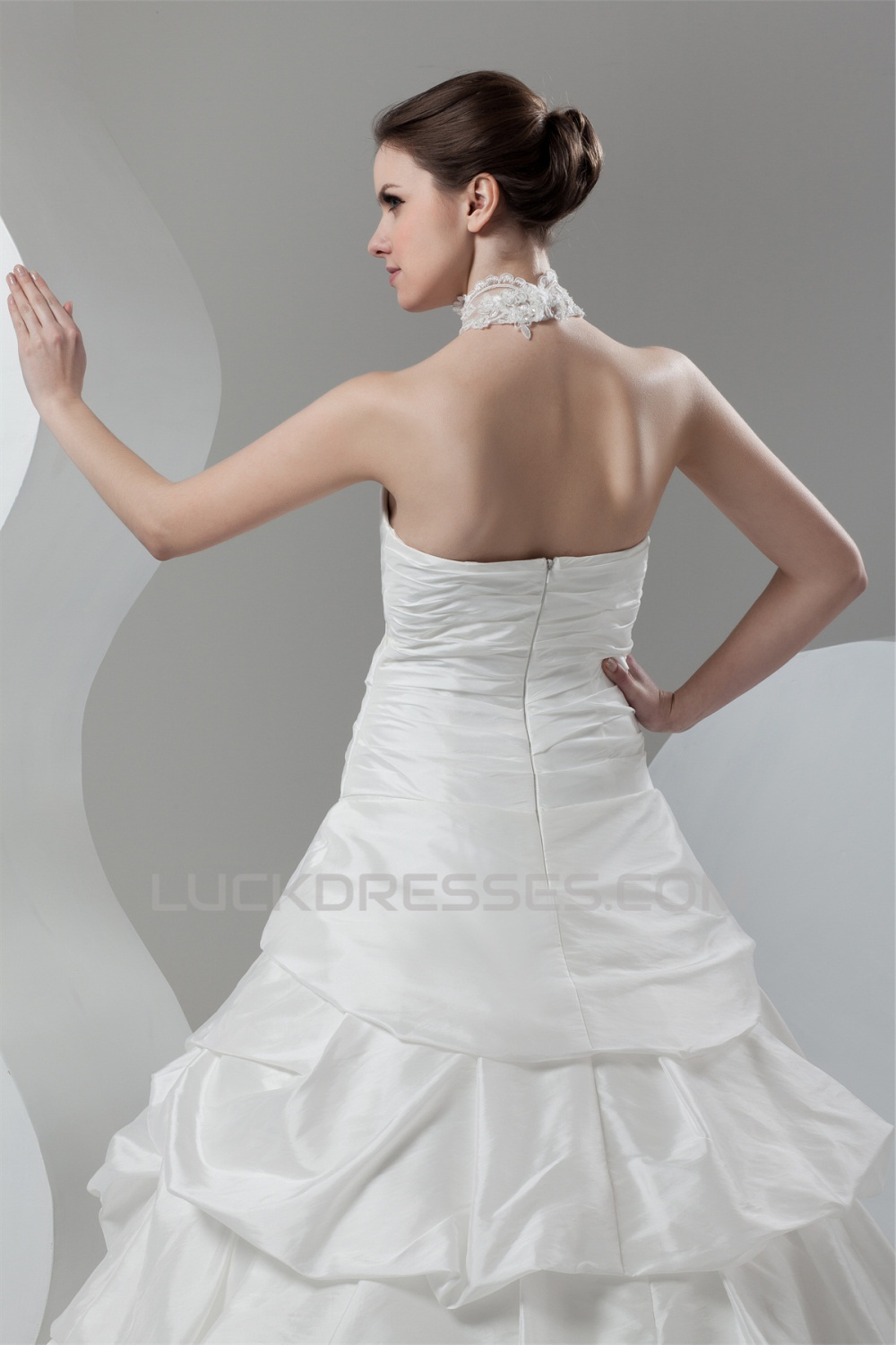 Organza Taffeta Lace High-Neck Ball Gown Sleeveless Wedding Dresses 2030819