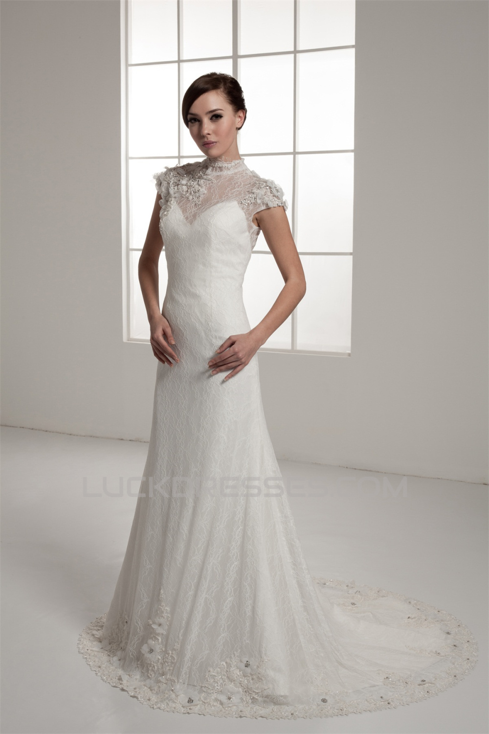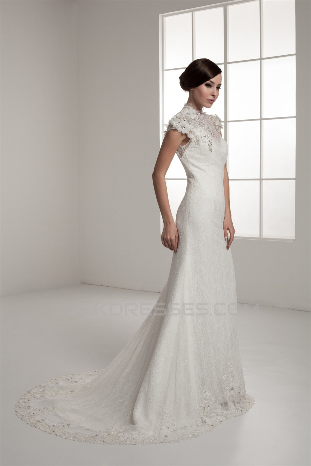 Portrait Sleeveless A-Line Lace Silk like Satin Fine Netting New Arrival Wedding Dresses 2030823
