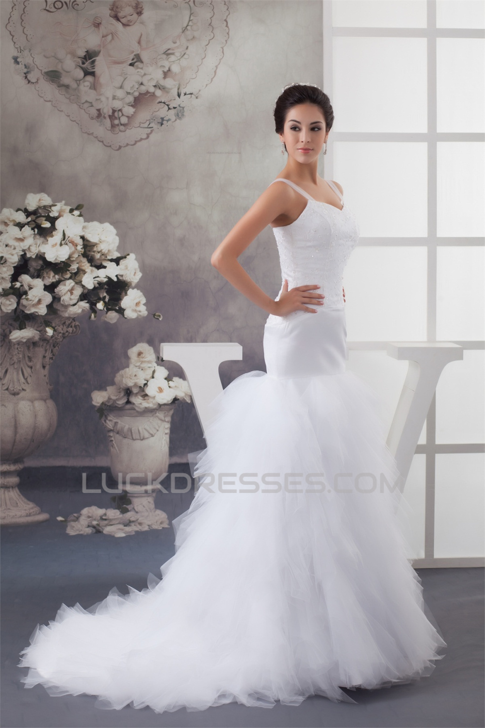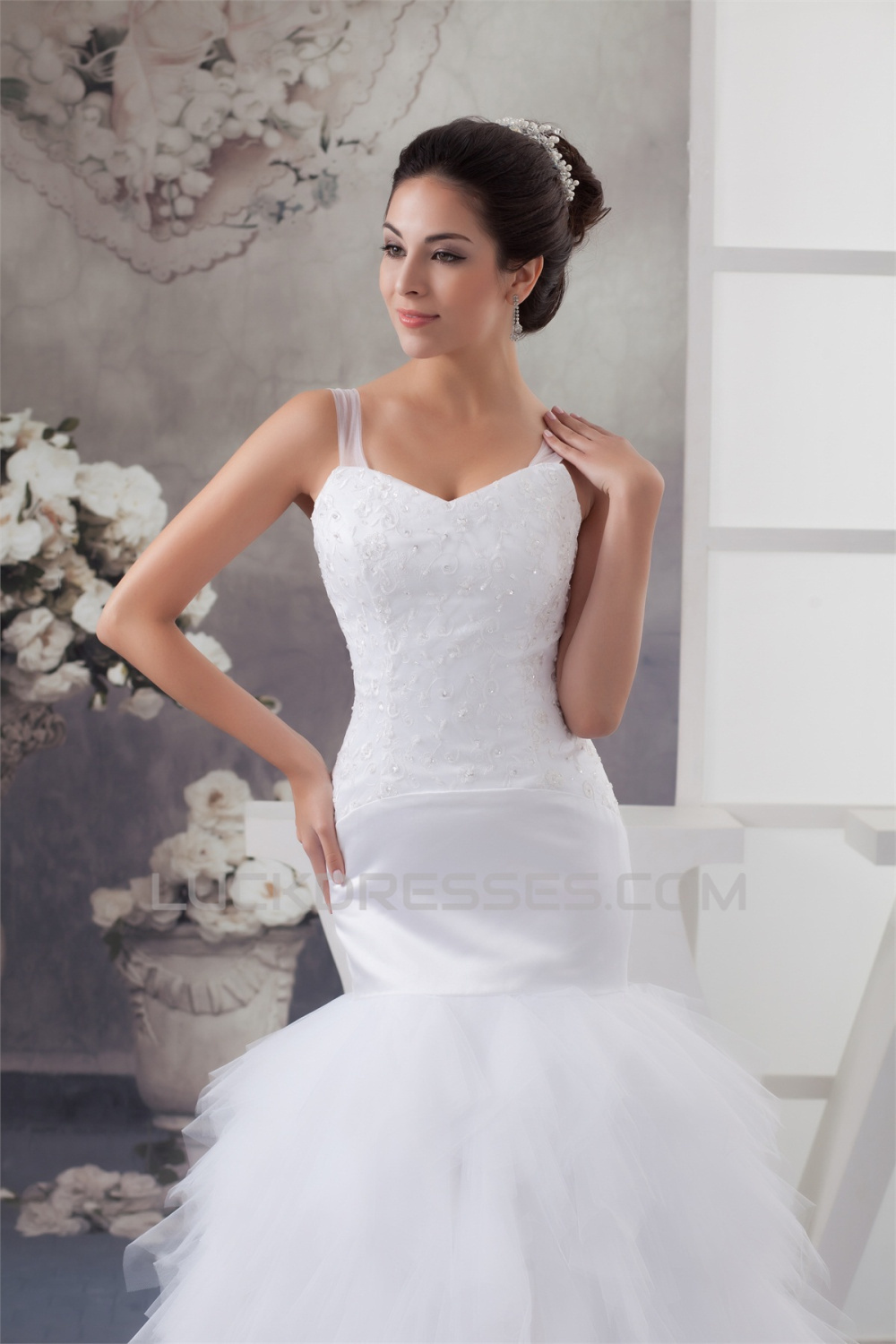 Princess Sleeveless Satin Fine Netting Lace Straps Wedding Dresses 2030825