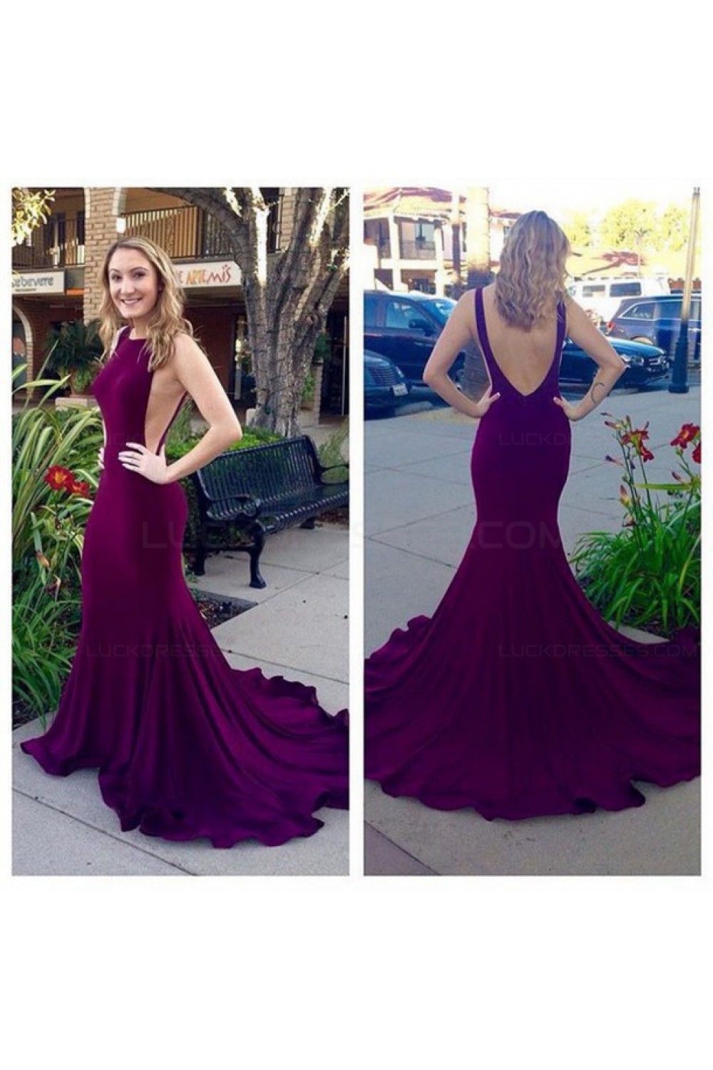 Purple Low V-Back Mermaid Long Prom Evening Formal Dresses 3020179