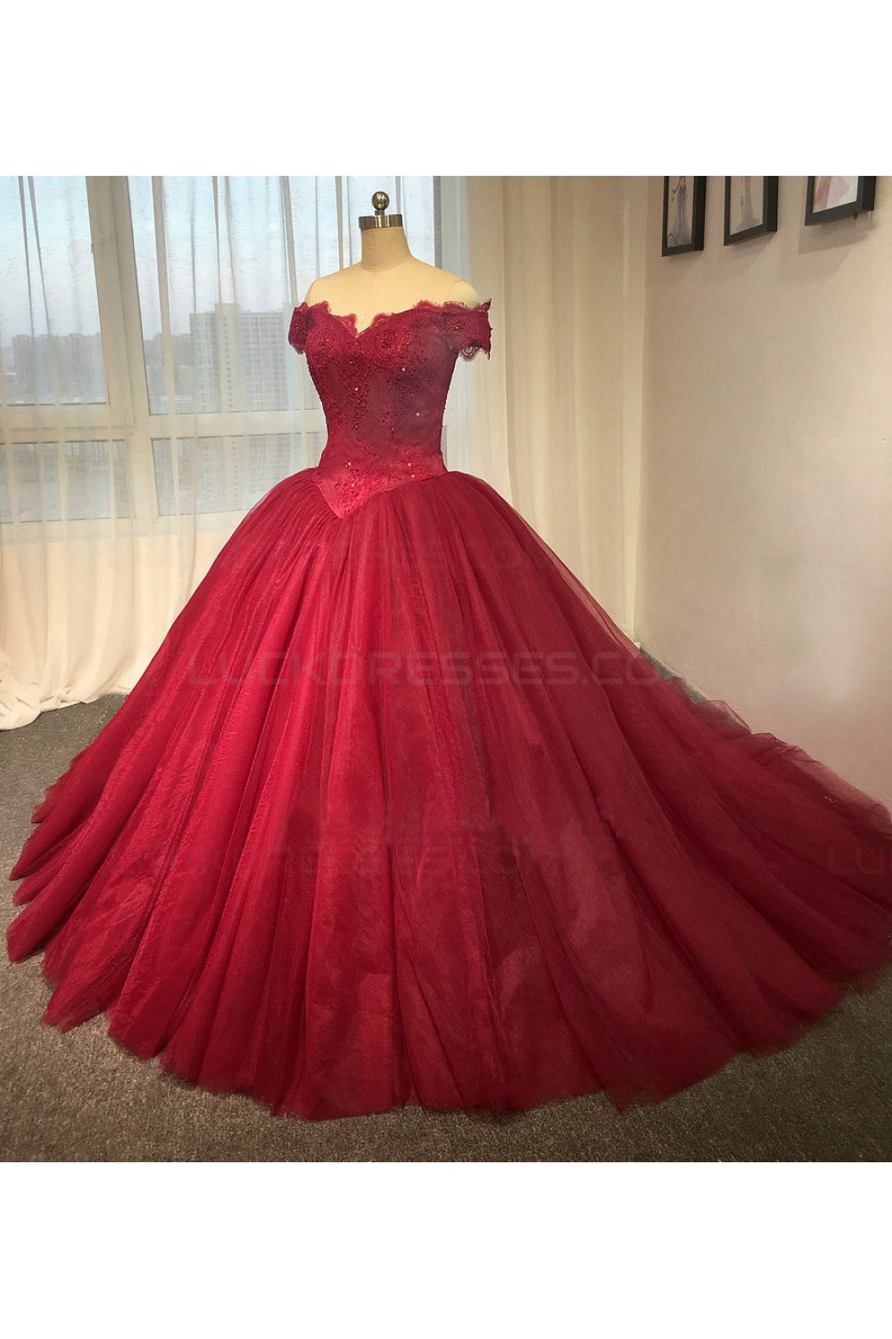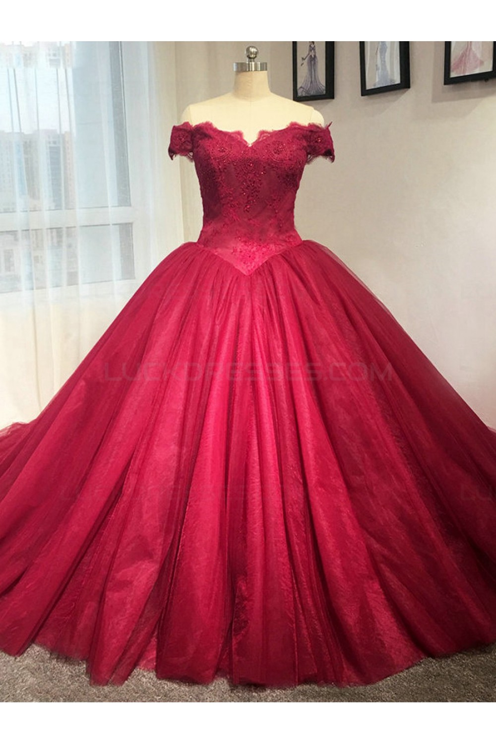 Red Off-the-Shoulder Lace Wedding Dresses Bridal Gowns 3030218