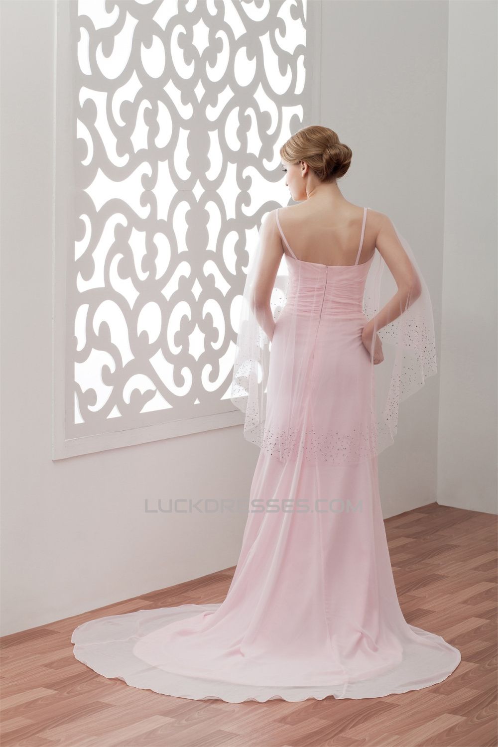 Ruffles Sleeveless Chiffon Long Pink Prom/Formal Evening Dresses 02020544