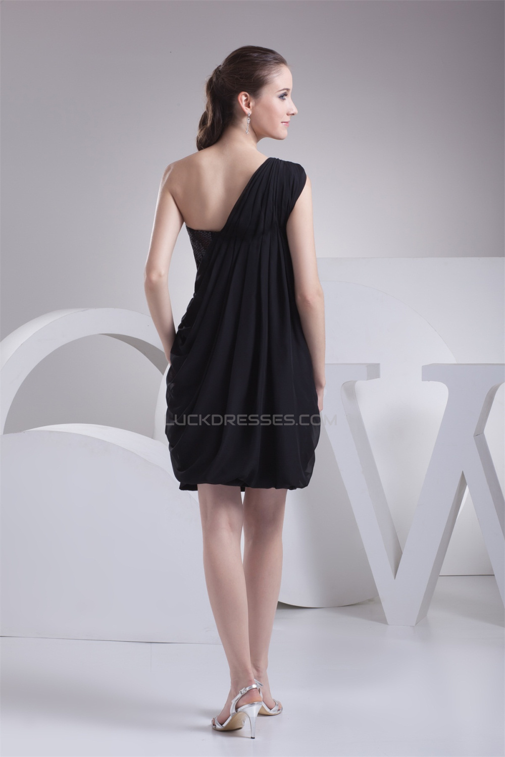 Ruffles Sleeveless One-Shoulder A-Line Short/Mini Sequins Dresses 02021117