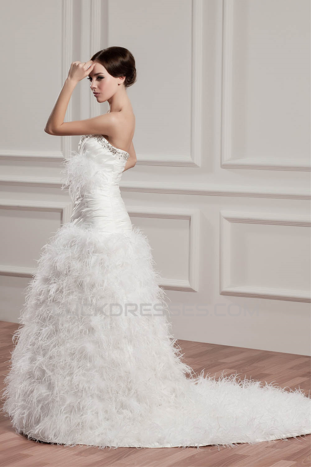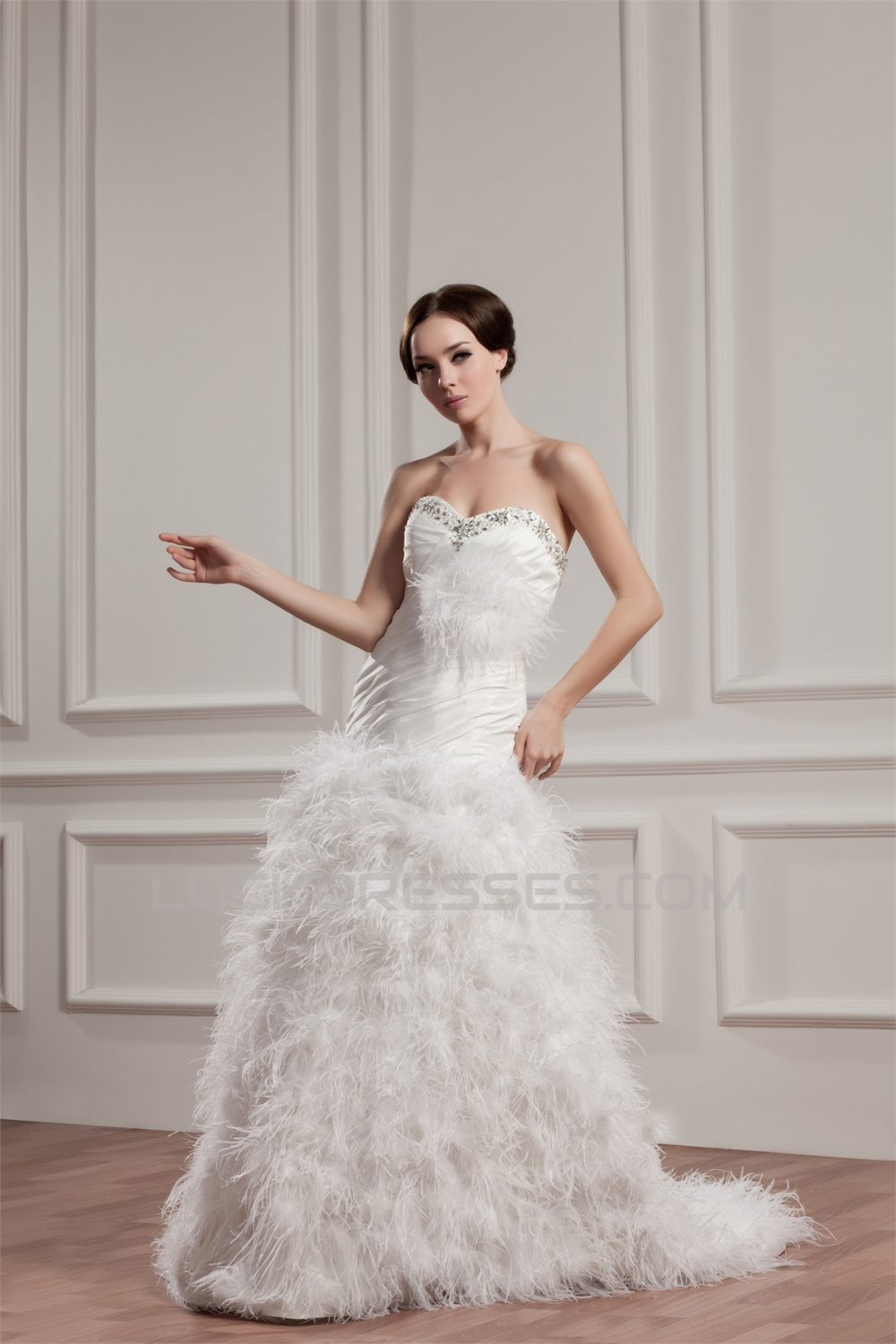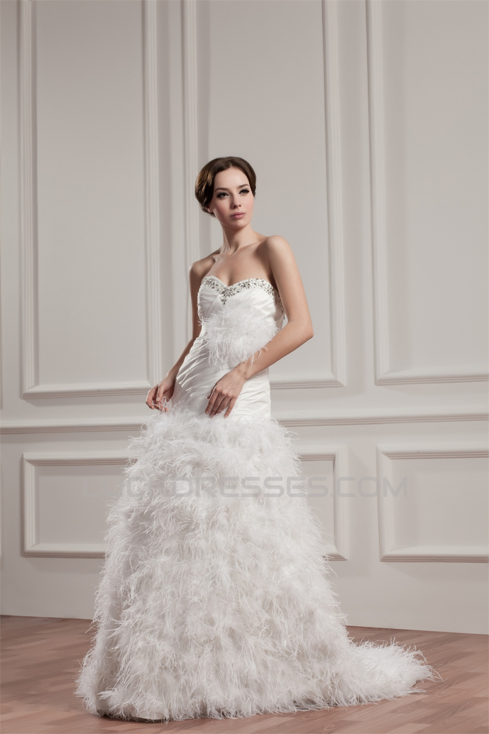 Satin Fine Netting A-Line Sleeveless Sweetheart Wedding Dresses 2030835