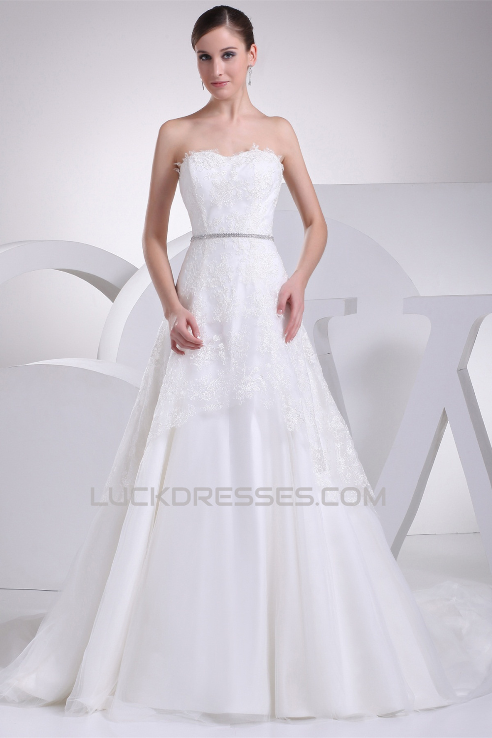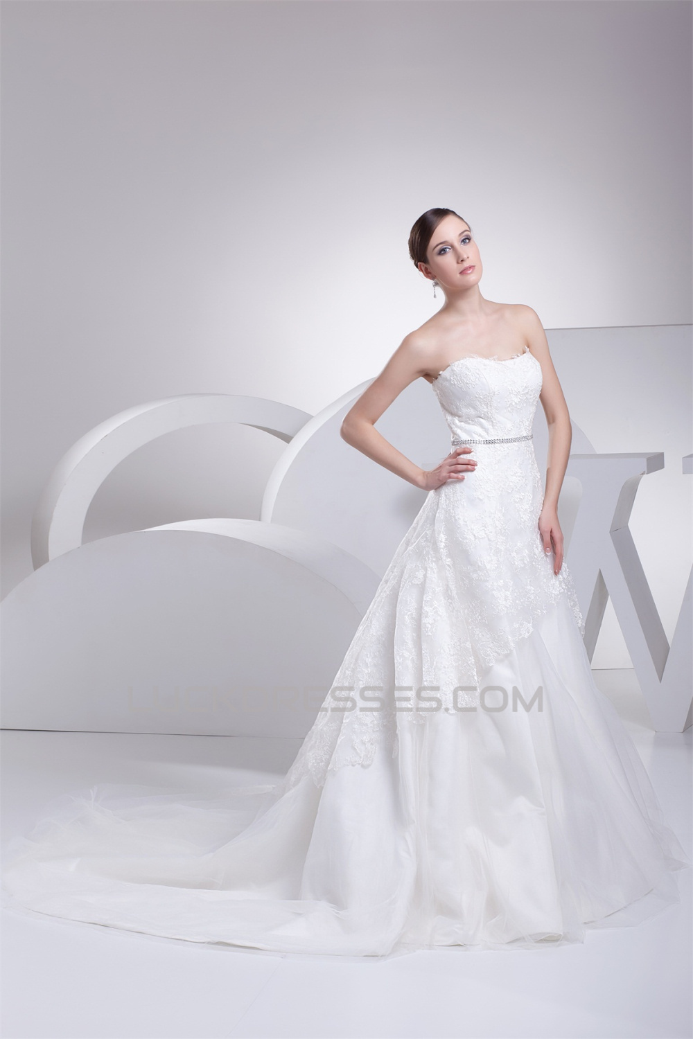 Satin Fine Netting Sleeveless A-Line Strapless New Arrival Lace Wedding Dresses 2030268
