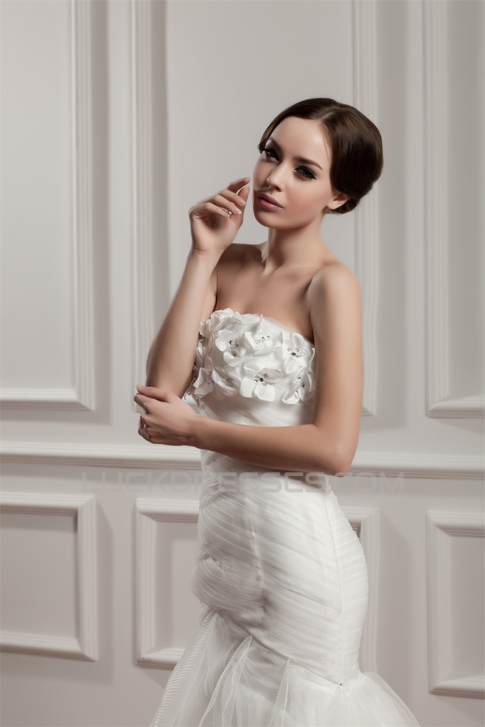 Satin Fine Netting Strapless Mermaid/Trumpet Sweet Wedding Dresses 2030843