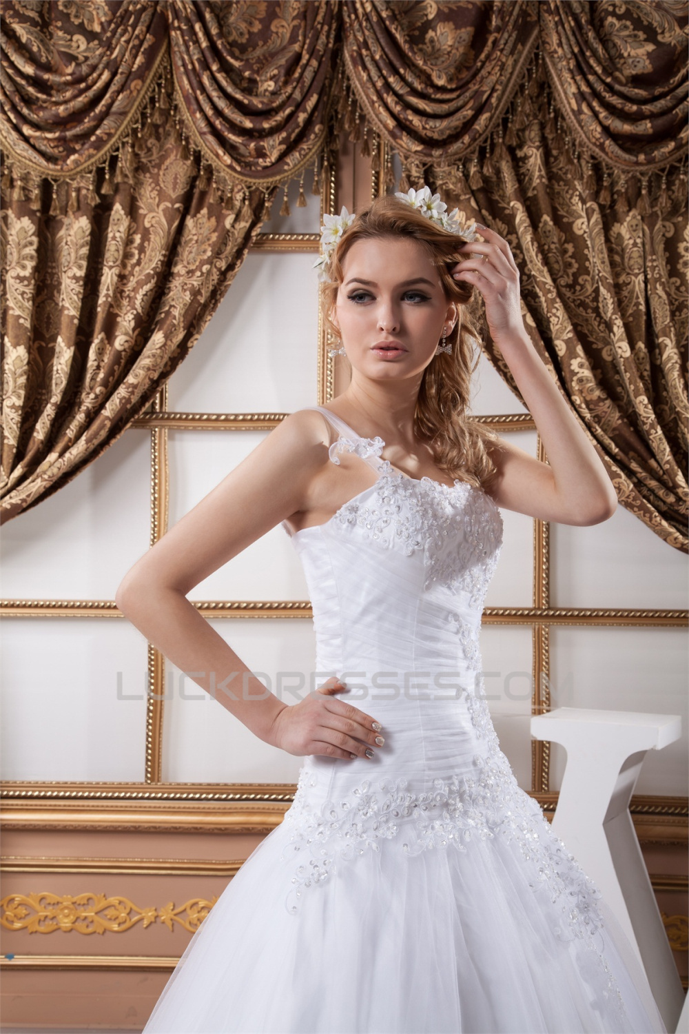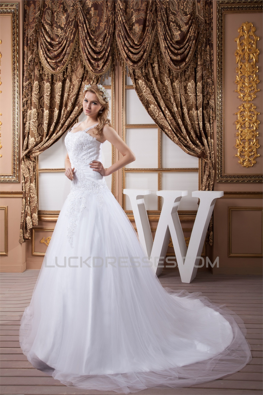 Satin Fine Netting Sweetheart Lace A-Line Wedding Dresses 2030845