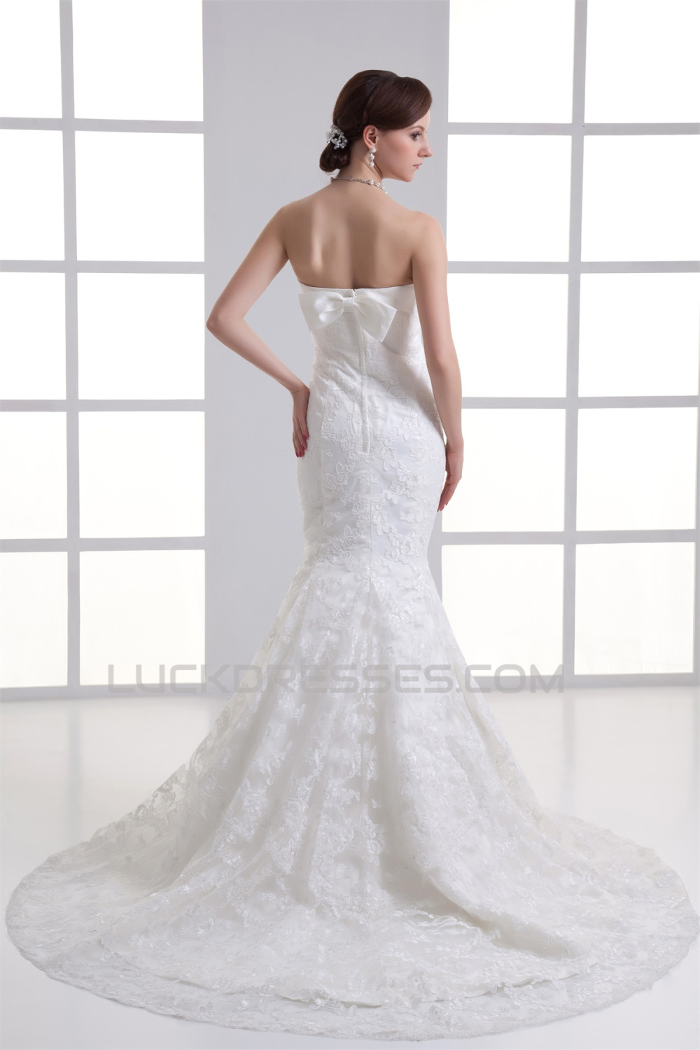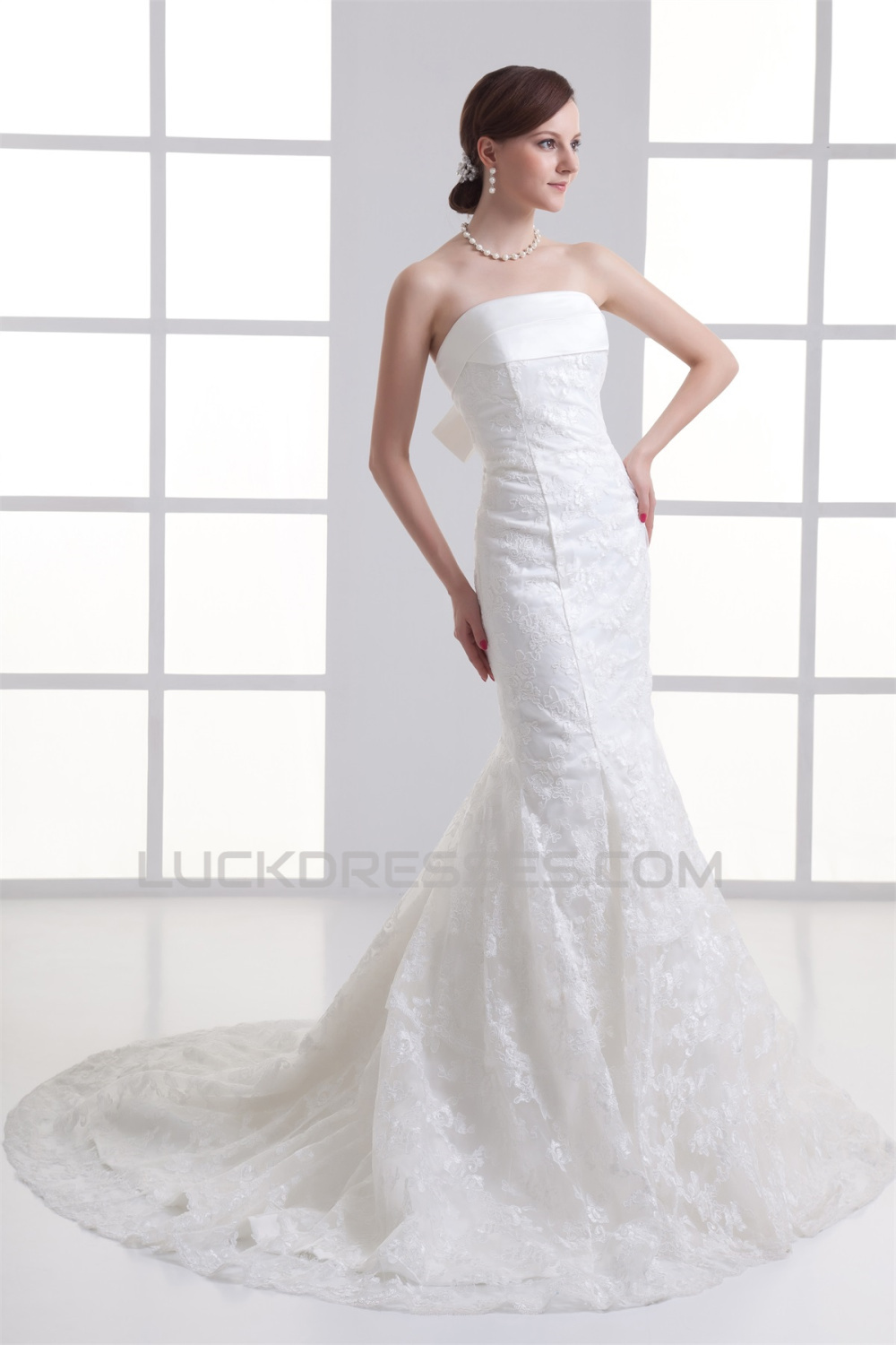 -50% Satin Lace Mermaid/Trumpet Sleeveless Strapless Wedding Dresses 2031277