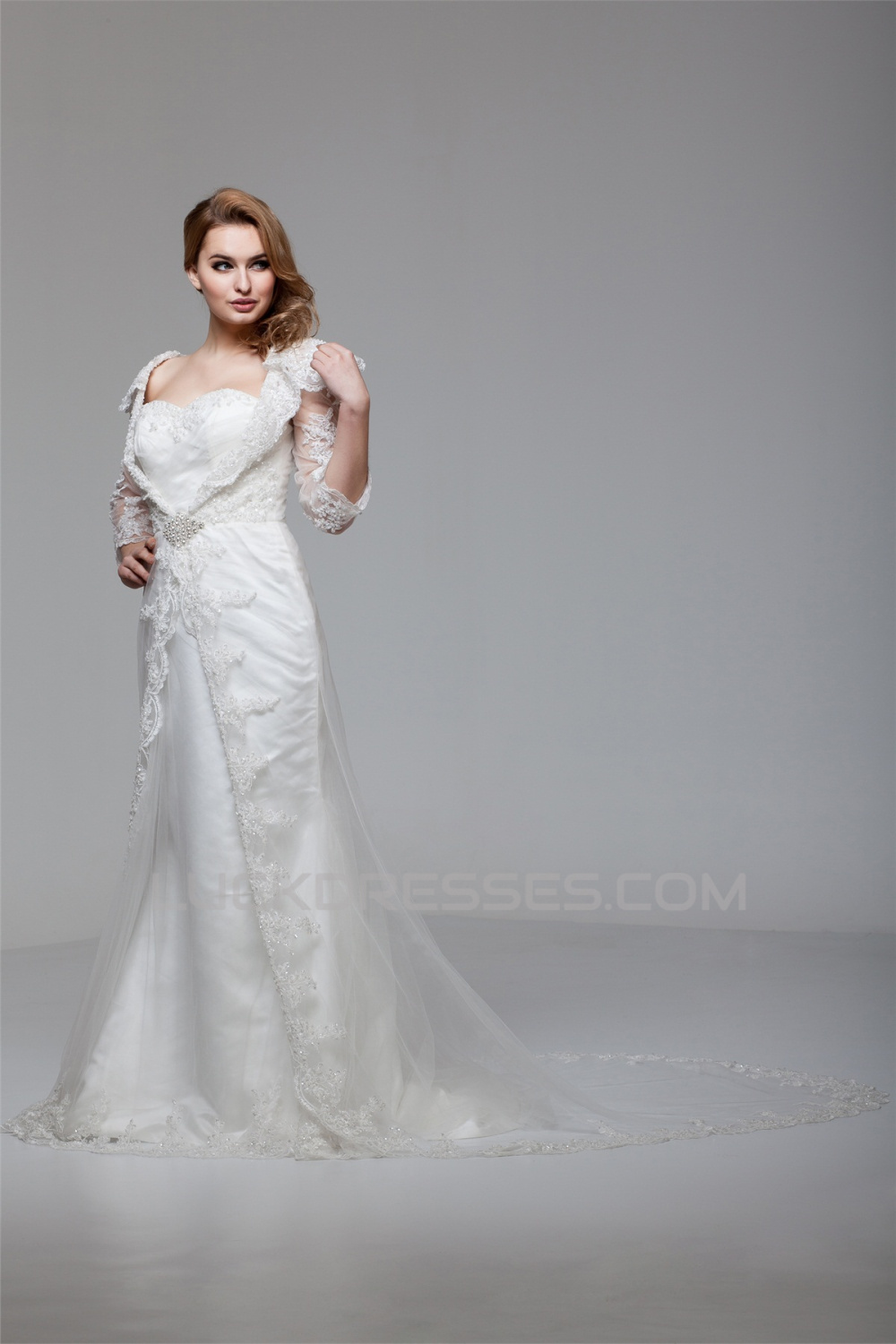 -50% Satin Organza 3/4 Length Sleeve Sweetheart Embellished Wedding Dresses 2030860