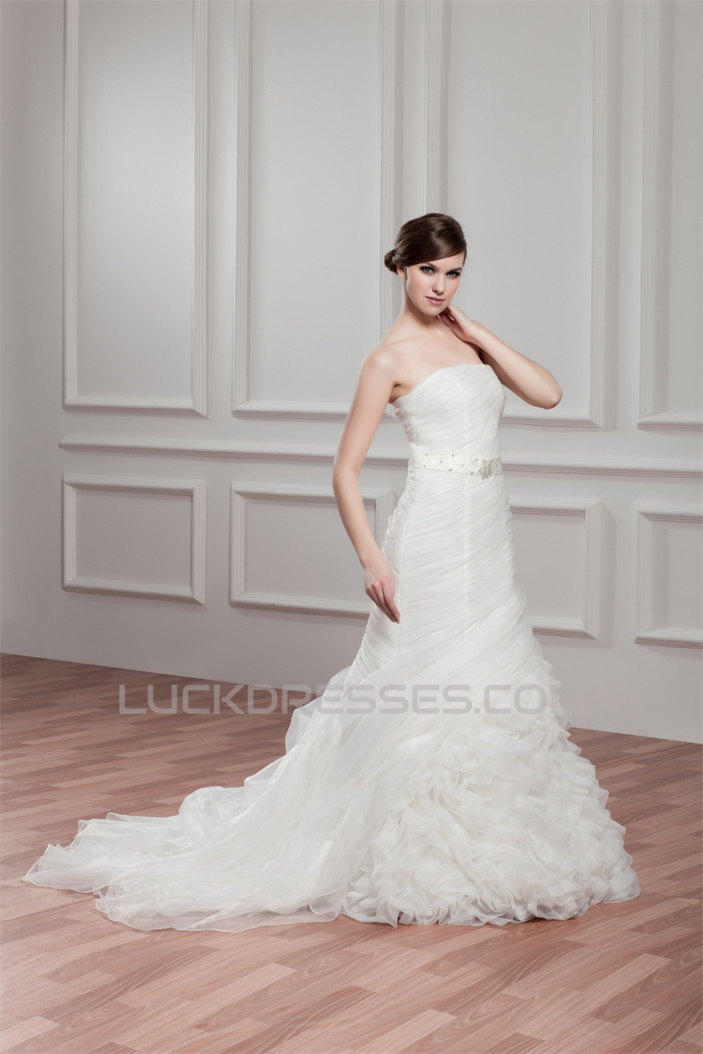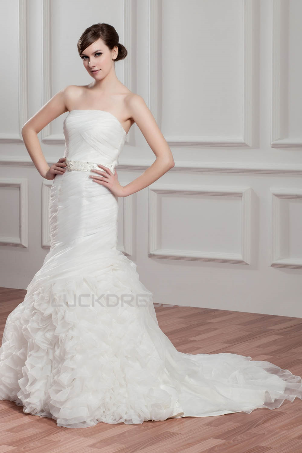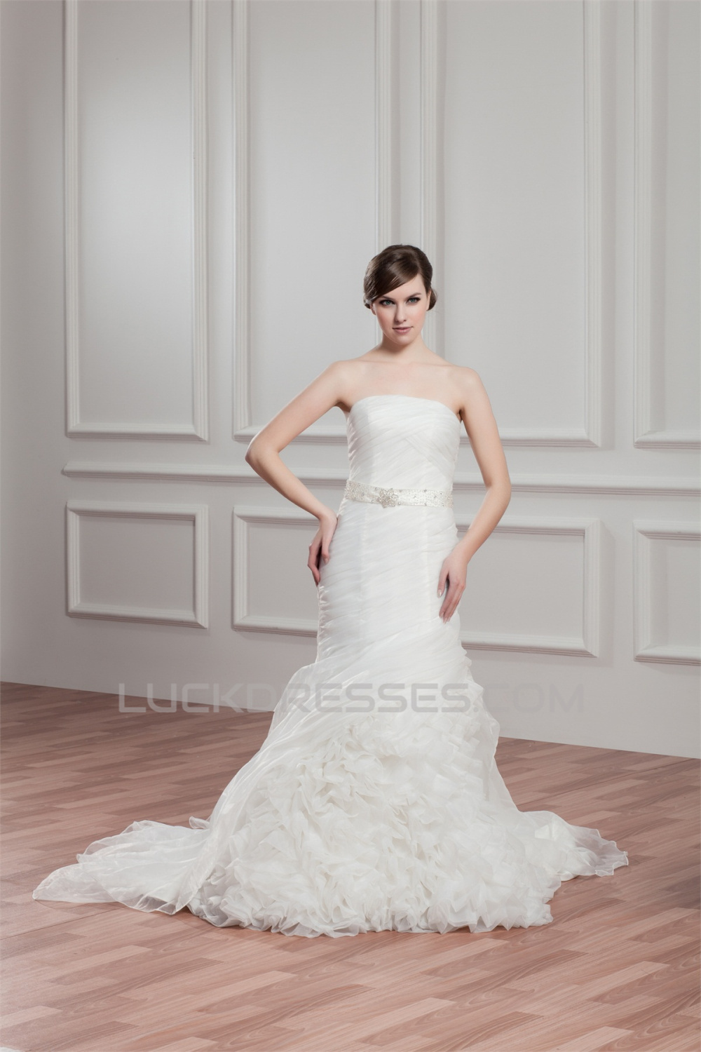 -50% Satin Organza Strapless Mermaid/Trumpet Beaded Wedding Dresses 2030868