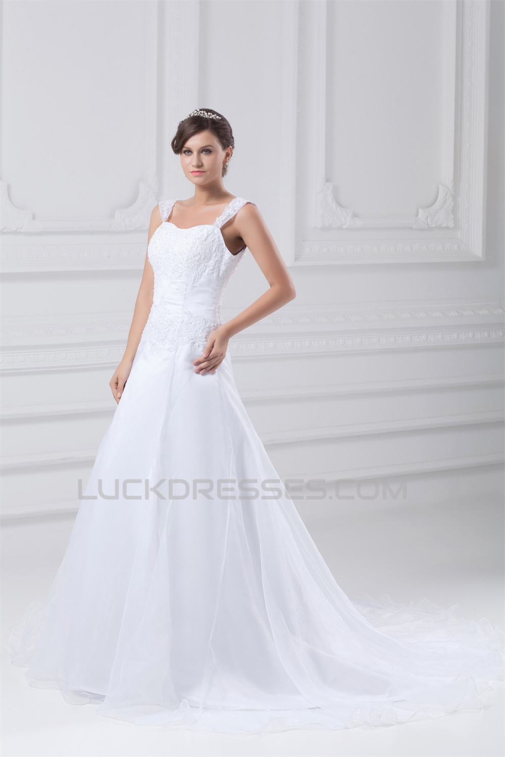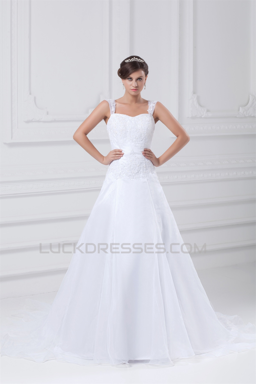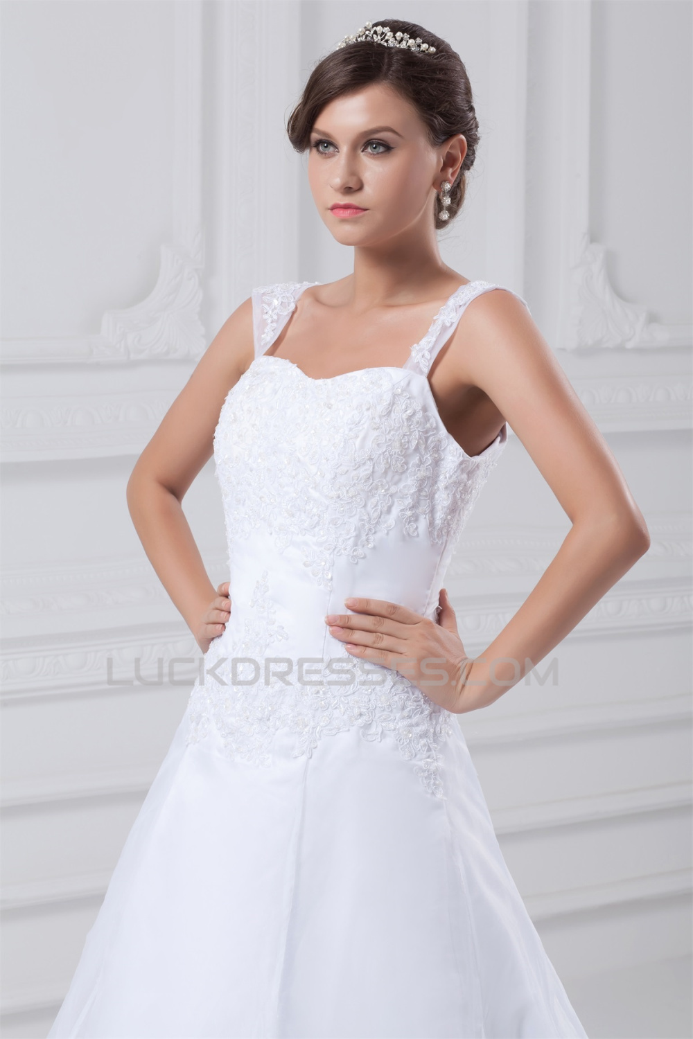 Satin Organza Straps A-Line Sleeveless Embellished Wedding Dresses 2031300