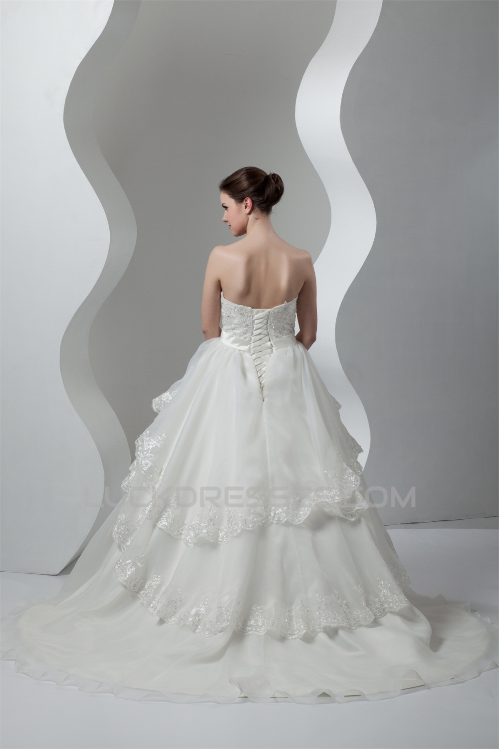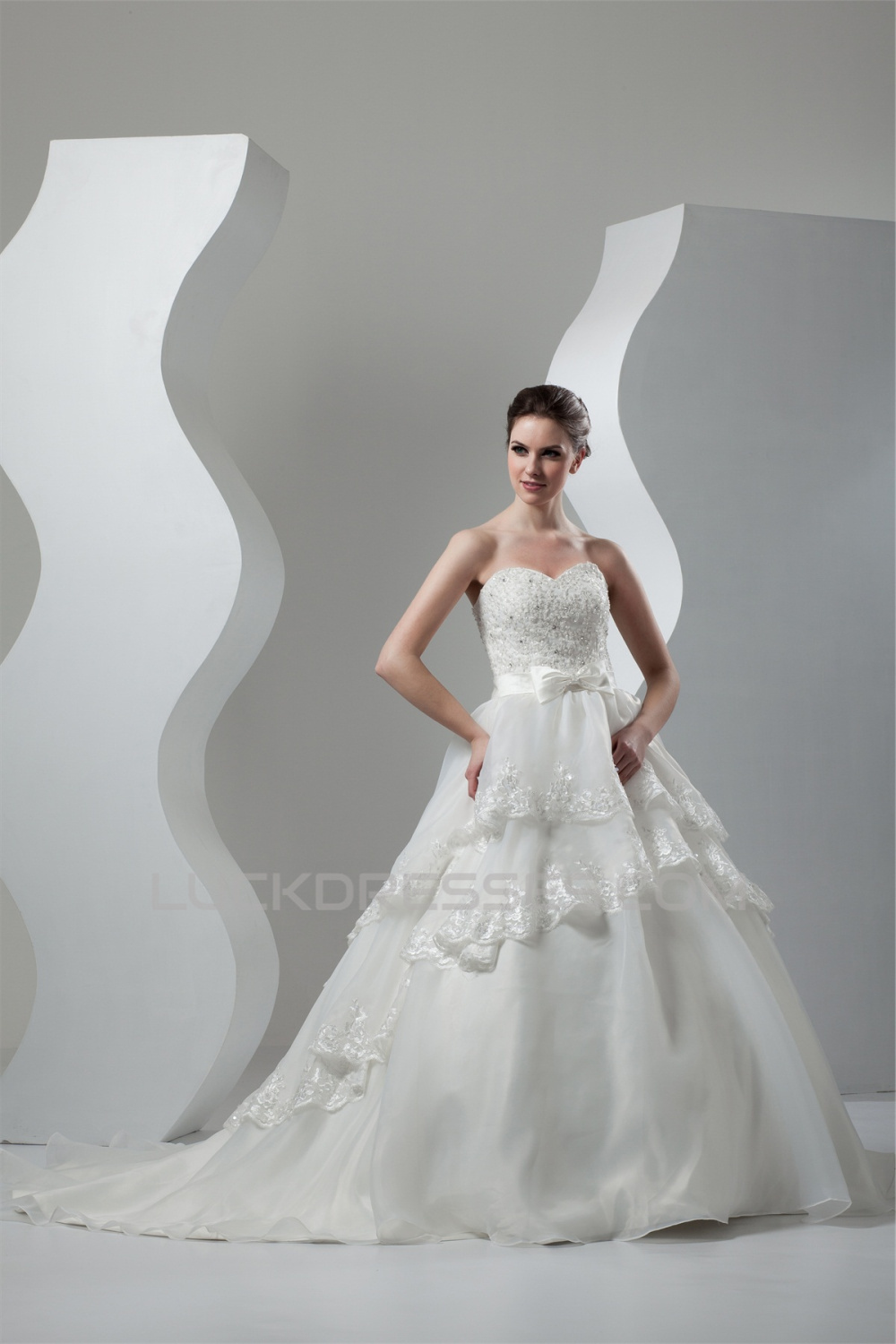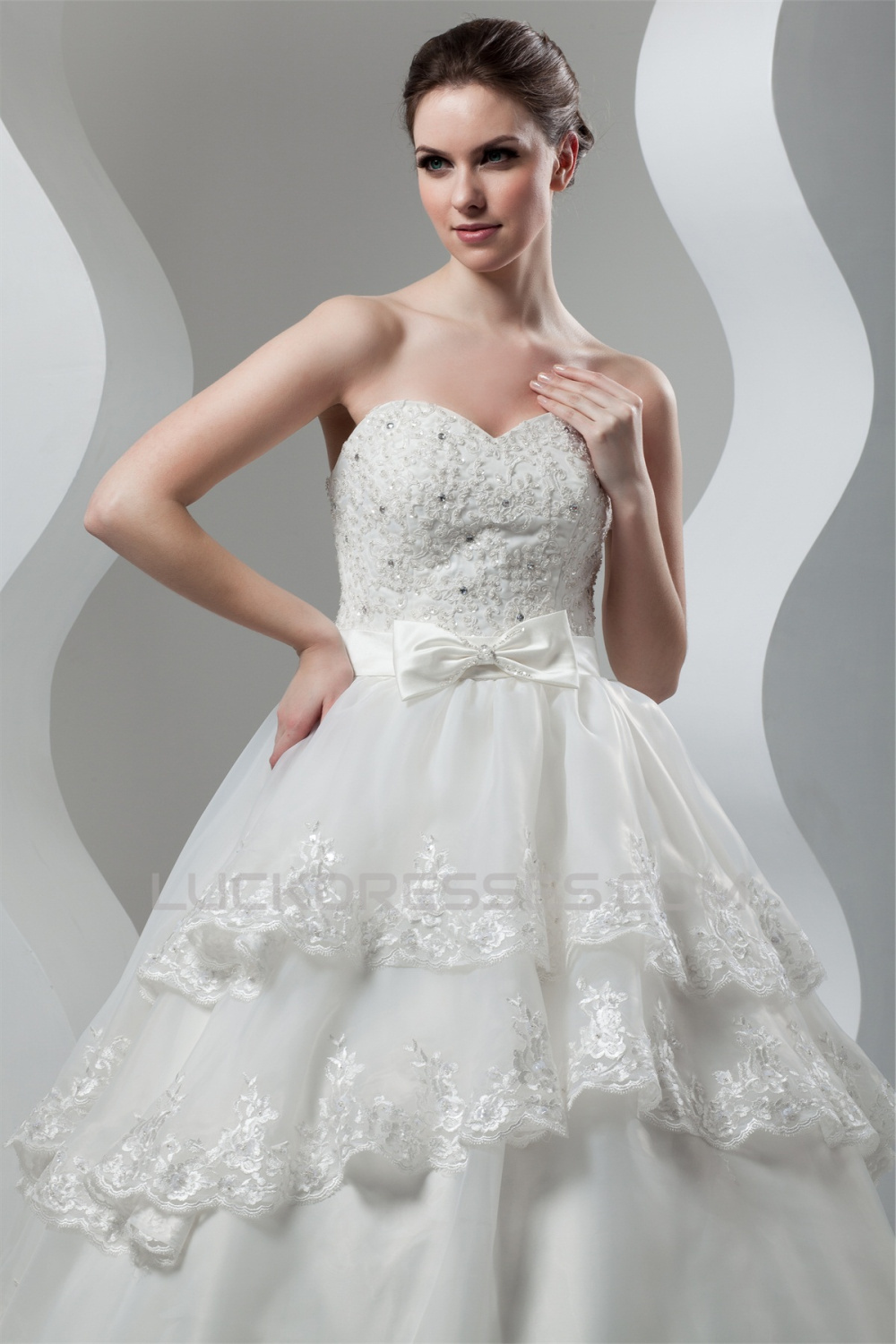Satin Organza Sweetheart Ball Gown Sleeveless Beaded Lace Wedding Dresses 2030870