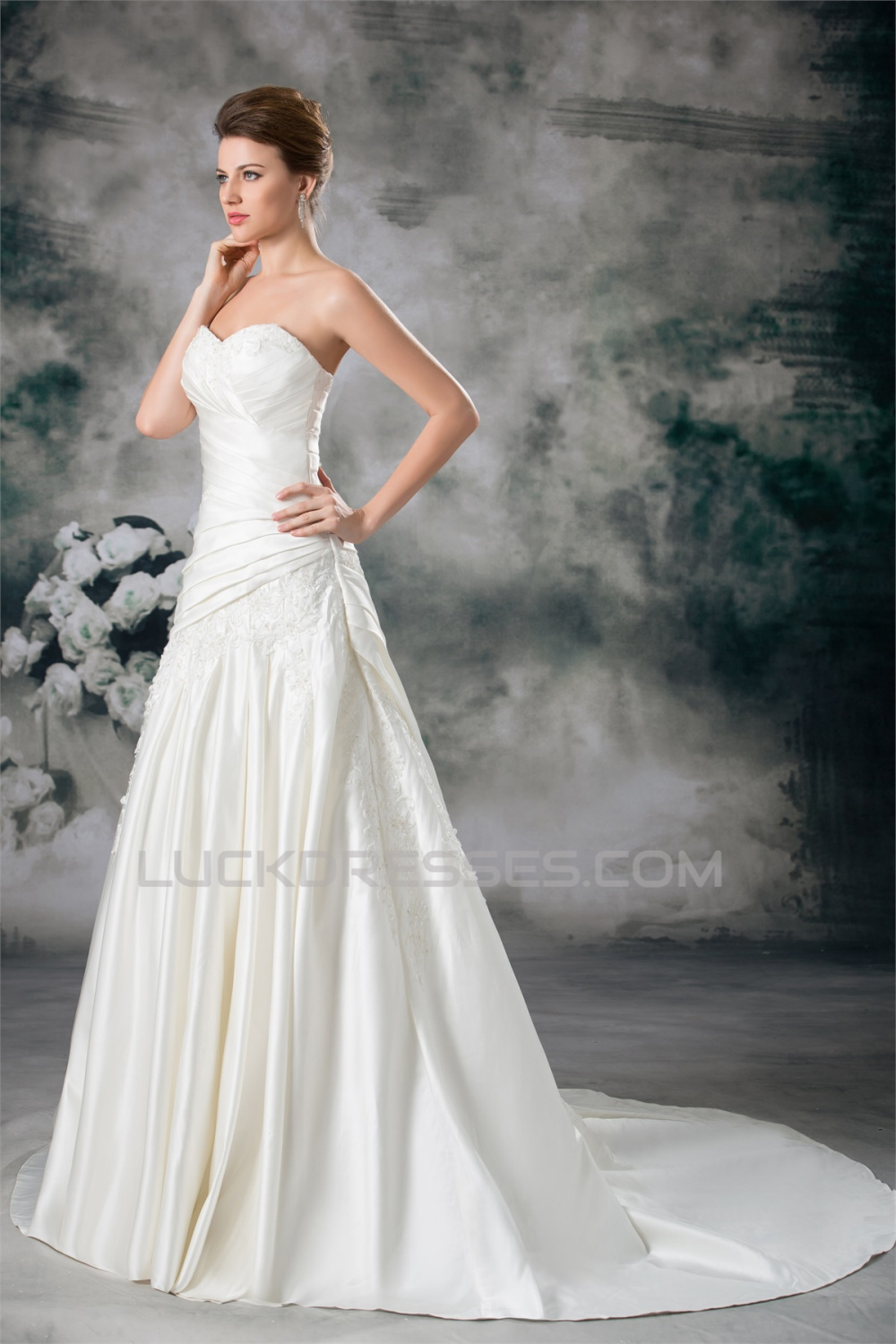 Satin Sweetheart Sleeveless A-Line Wedding Dresses 2031303