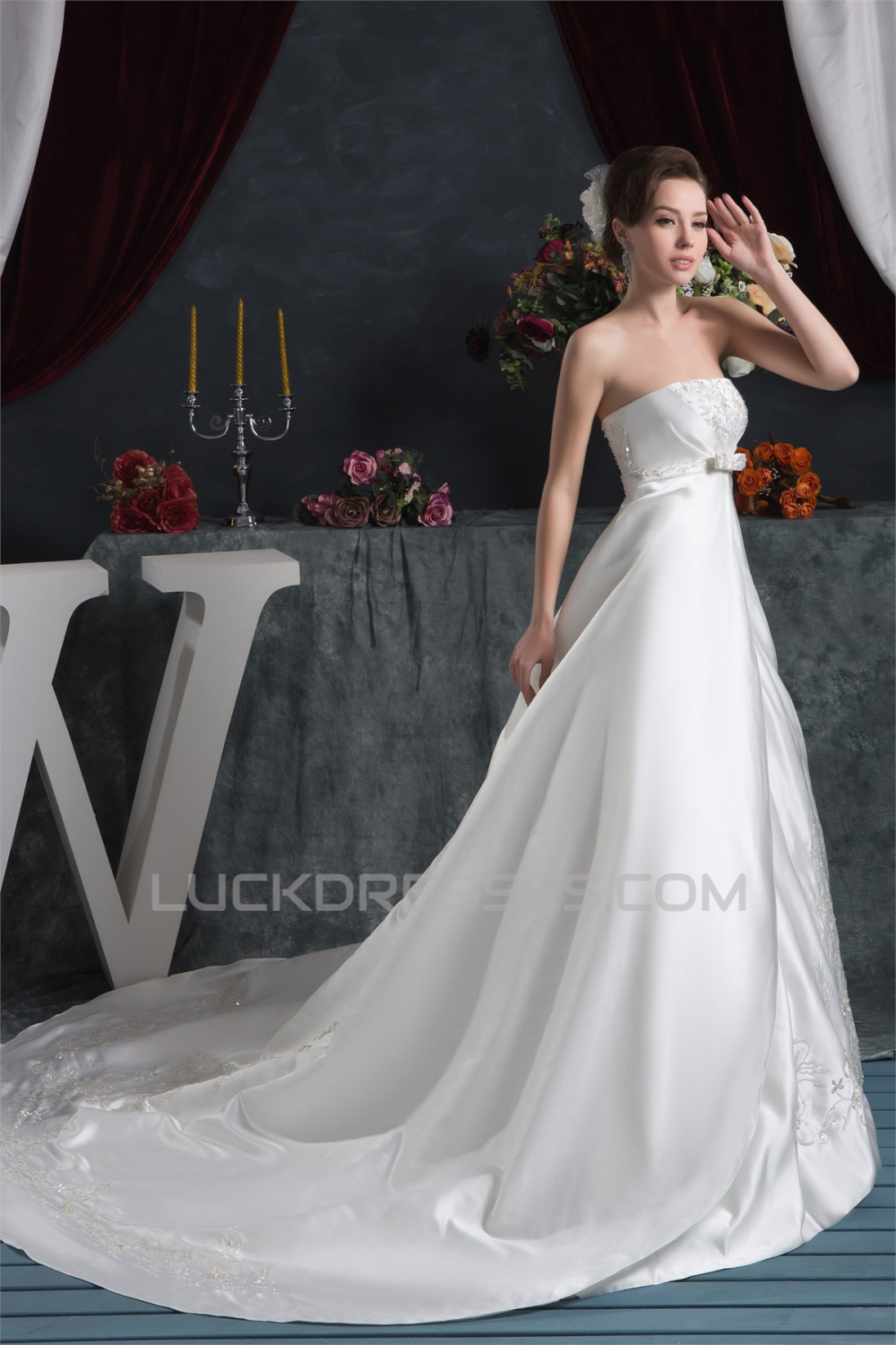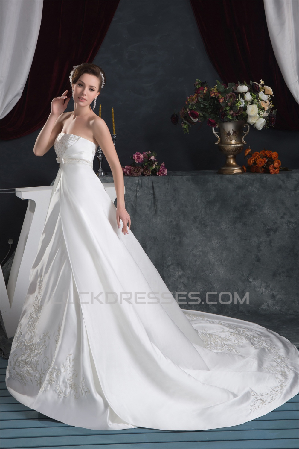 Satin Taffeta Sleeveless Strapless A-Line New Arrival Wedding Dresses 2030891