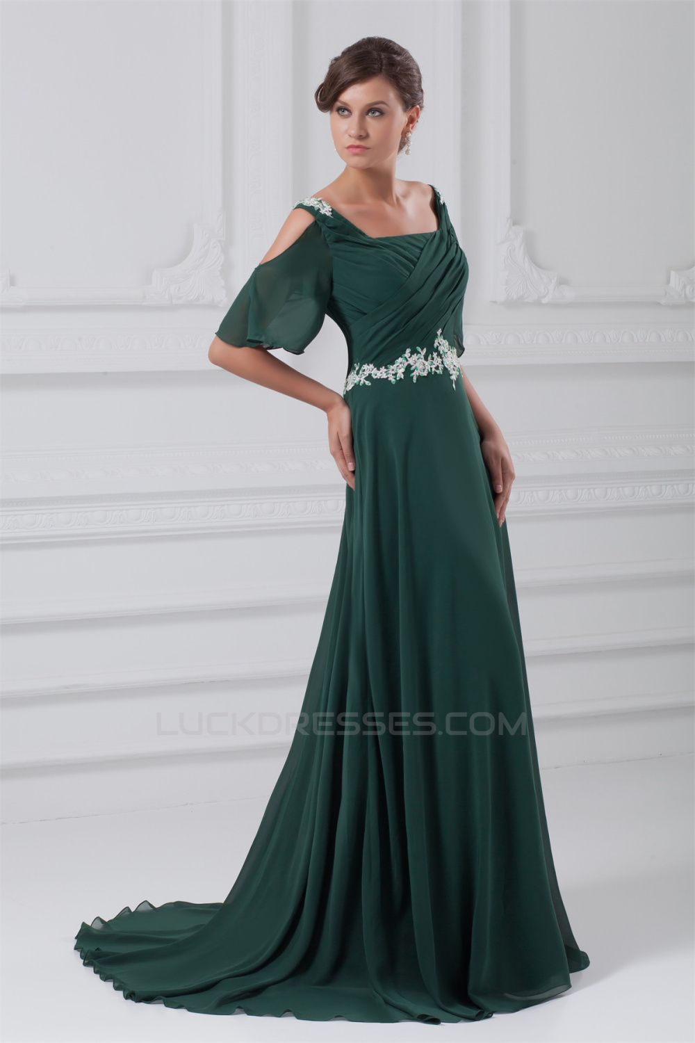 Sequins Half Elbow Length A-Line Chiffon Elastic Woven Satin Prom/Formal Evening Dresses 02020829
