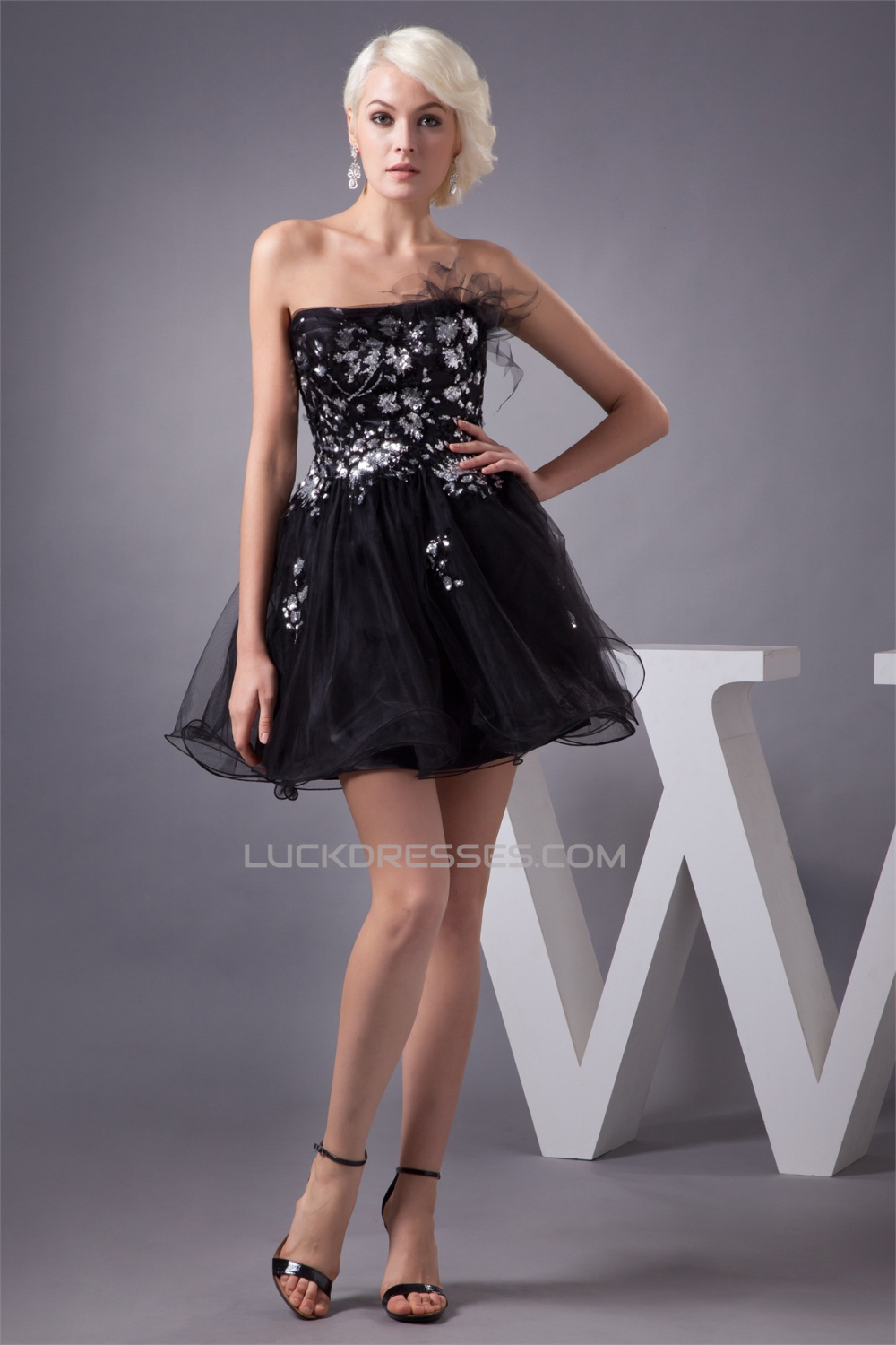 Sequins Satin Fine Netting A-Line Sleeveless Little Black Dresses 02021352