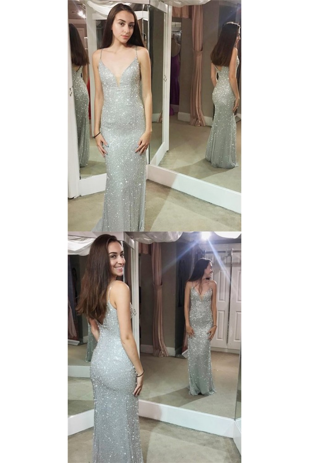 Sexy Beaded Sequins Long Prom Dresses Formal Evening Dresses 601251