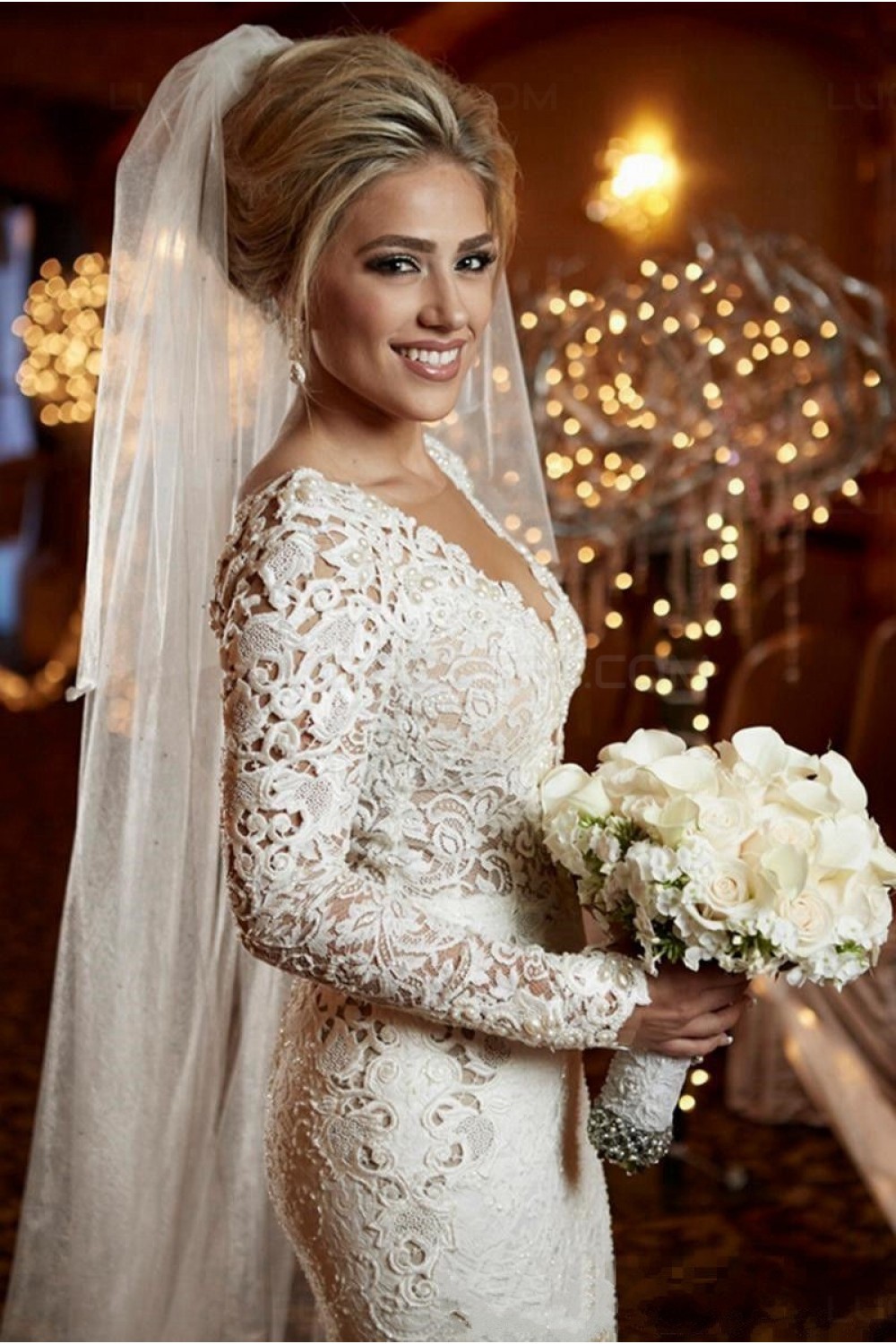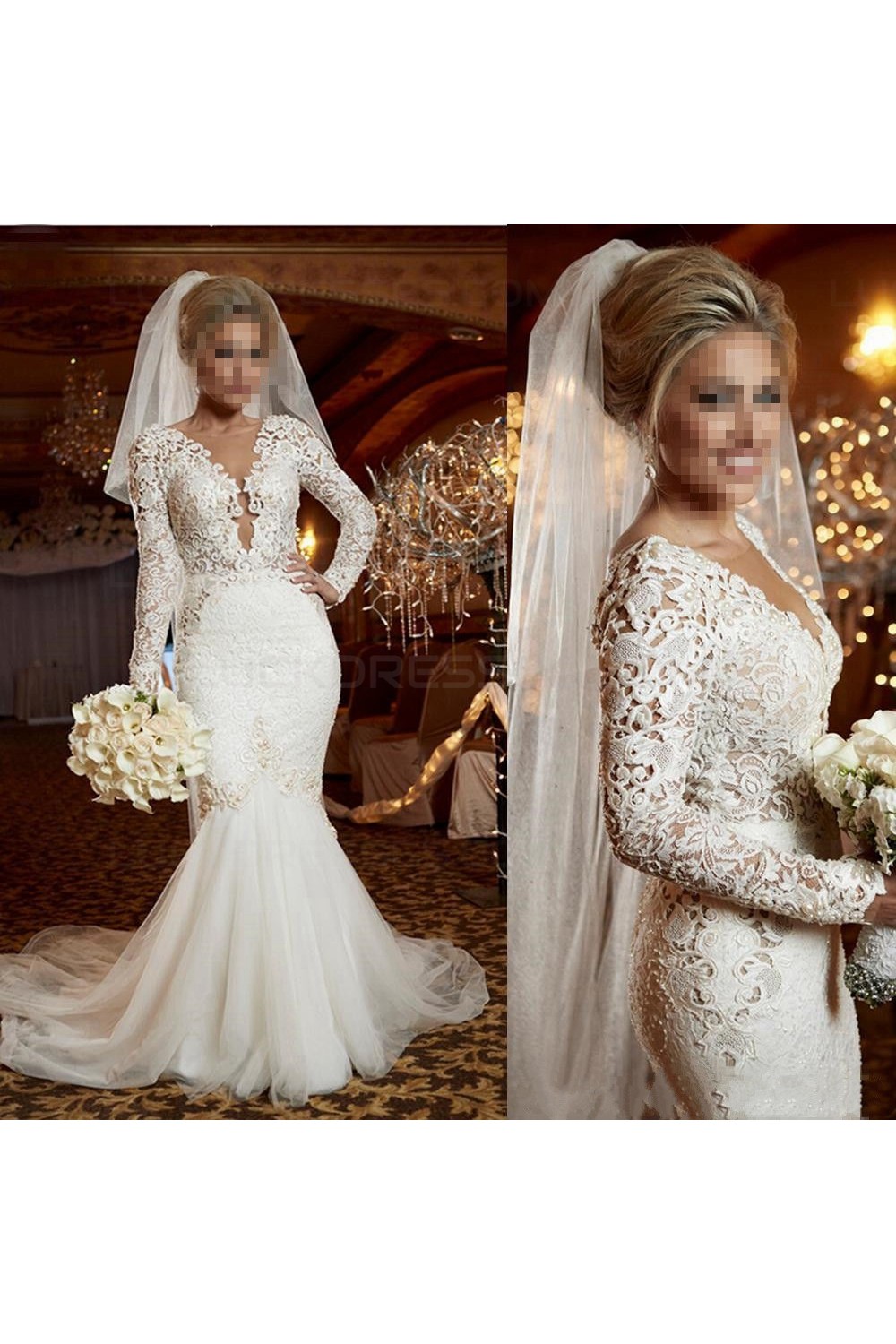 Sexy Mermaid Long Sleeves Lace Wedding Dresses Bridal Gowns 3030321